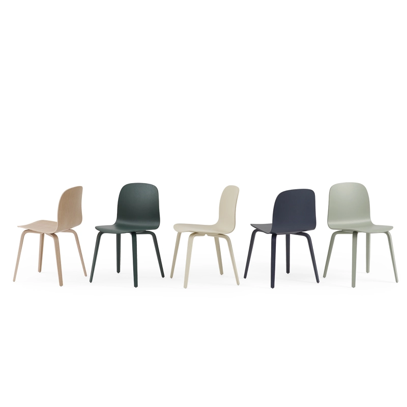 Visu est une collection de sièges dessinée par Mika Tolvanen pour Muuto. Après les paniers Restore, le designer réinterprète la traditionnelle chaise en contreplaqué moulé. Il crée ainsi une famille d'assises modernes pour différents usages : une chaise avec un piètement luge ou avec des pieds bois, une chauffeuse et un tabouret de bar. Ces sièges sont disponibles dans plusieurs couleurs de bois ou recouverts de tissu. Chacun peut ainsi trouver le fauteuil qui lui correspond ou créer des mélanges de couleurs de chaises à placer autour de la table de la salle à manger.