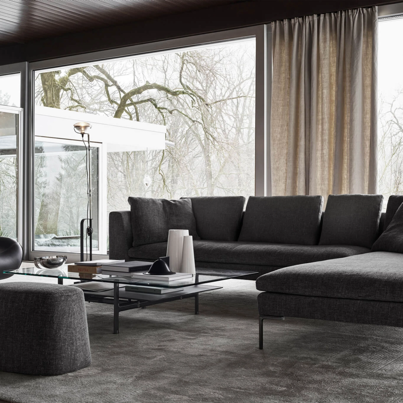 Le canapé Charles, conçu par le designer Antonio Citterio en 1997 pour B&B Italia, incarne l’élégance et l'innovation du design contemporain. Véritable icône, il se distingue par son image de légèreté, renforcée par le design épuré de ses pieds en fusion d’aluminium, en forme de « L » renversé. Ces pieds, associés aux accoudoirs fins et à l’assise unique, créent un jeu visuel subtil qui met en valeur le confort et la fonctionnalité du canapé. La forme aérienne et le profil sobre du canapé Charles lui permettent d’occuper l’espace de manière harmonieuse tout en y apportant une touche de modernité. Son design minimaliste, combiné à ses coussins disposés de manière décontractée, lui confère une grande richesse visuelle tout en conservant une simplicité intemporelle. Que ce soit pour un intérieur contemporain ou plus classique, le canapé Charles se fond avec élégance et modernité, apportant une atmosphère de raffinement. Son allure sobre mais audacieuse garantit qu'il résistera à l’épreuve du temps et des modes, tout en demeurant un symbole de confort et de style.