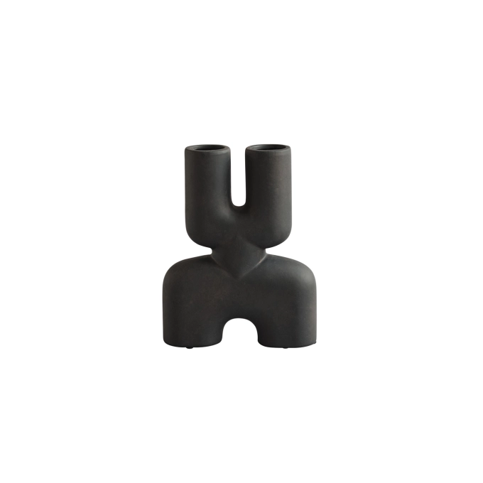 Le vase Cobra Double Mini de la marque 101 Copenhagen propose une interprétation compacte et expressive du design sculptural. Conçu par les designers Kristian Sofus Hansen et Tommy Hyldahl, il incarne une approche libre et presque instinctive de la forme. Avec ses deux ouvertures et sa base étroite, sa silhouette évoque une petite figure en équilibre, à la fois stable et dynamique. Les lignes sont volontairement irrégulières, comme dessinées à main levée, ce qui donne au Cobra Double une dimension ludique et spontanée. Malgré son format réduit, le vase dégage une forte personnalité, comme une sculpture miniature. Le travail de la céramique met en valeur une surface légèrement texturée, qui capte la lumière et révèle des nuances subtiles. Cette matière renforce le caractère artisanal de l’objet et lui donne une présence chaleureuse. À la fois décoratif et fonctionnel, le Cobra Double Mini peut accueillir de petites compositions florales ou être exposé seul. À travers cette pièce, 101 Copenhagen affirme une vision du design où l’expression, la forme et la matière priment, même à petite échelle.