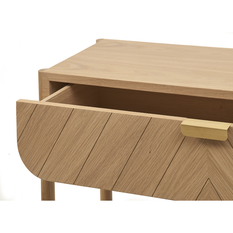Inspirée de l’univers maritime, la console Marius deHartoaffiche une finition chêne naturel chaleureuse et authentique, associée à un tiroir disponible en chêne naturel, gris clair ou bleu pétrole La forme générale de Marius évoque la coque d’un bateau tandis que les rainures obliques qui habillent élégamment sa façade dessinent ses voiles. Elle est ornée de jolies poignées en métal doré. Elégante et épurée, la console Mariusen chêne a tout pour plaire !