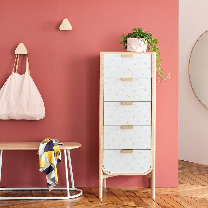 Inspirée de l’univers maritime, la console Marius deHartoaffiche une finition chêne naturel chaleureuse et authentique, associée à un tiroir disponible en chêne naturel, gris clair ou bleu pétrole La forme générale de Marius évoque la coque d’un bateau tandis que les rainures obliques qui habillent élégamment sa façade dessinent ses voiles. Elle est ornée de jolies poignées en métal doré. Elégante et épurée, la console Mariusen chêne a tout pour plaire !
