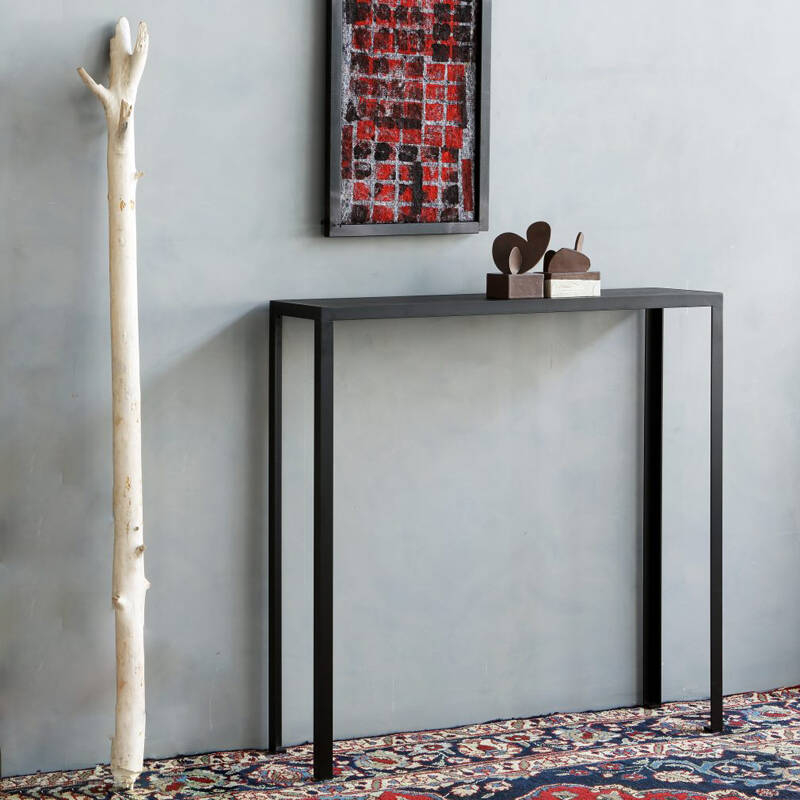 Slim est dotée d'une structure en acier finition époxy et d'une plateau recouvert de linoléum noir. Des finitions de grande qualité qui participent au caractère raffiné de la console.
