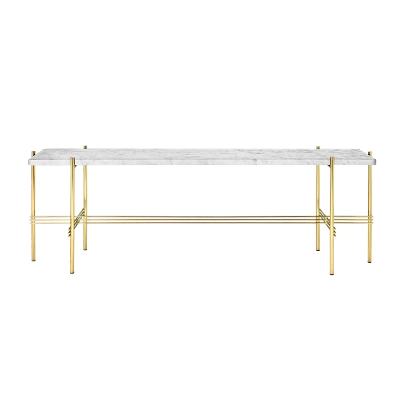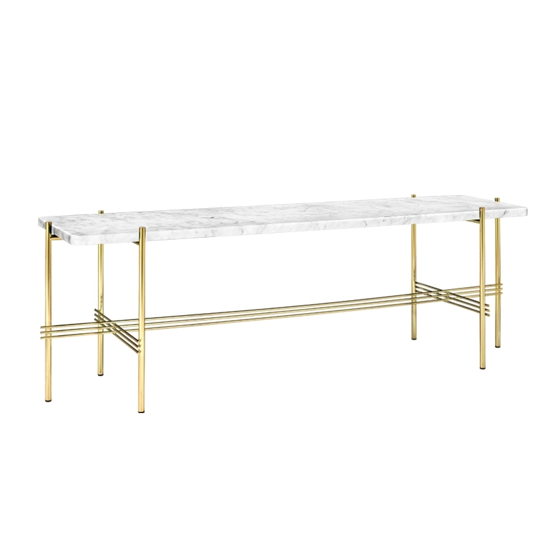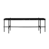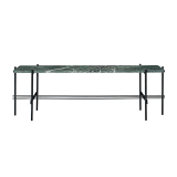 La collaboration entre le studio GamFratesi et la marque Gubi incarne la rencontre du design italien et l'inspiration danoise. L'approche minimaliste et l'artisanat traditionnel des pays scandinaves s'associent à un concept fort et émotionnel. GamFratesi joue sur les contrastes de matériaux et de formes avec un plateau en marbre ou en verre coloré reposant sur un piètement fin en métal noir ou laiton. Graphique et élégante, la console TS de Gubi apporte une touche d'élégance dans un salon ou entrée. La collection TS se décline également en version table basse, guéridon, table de repas et bureau.