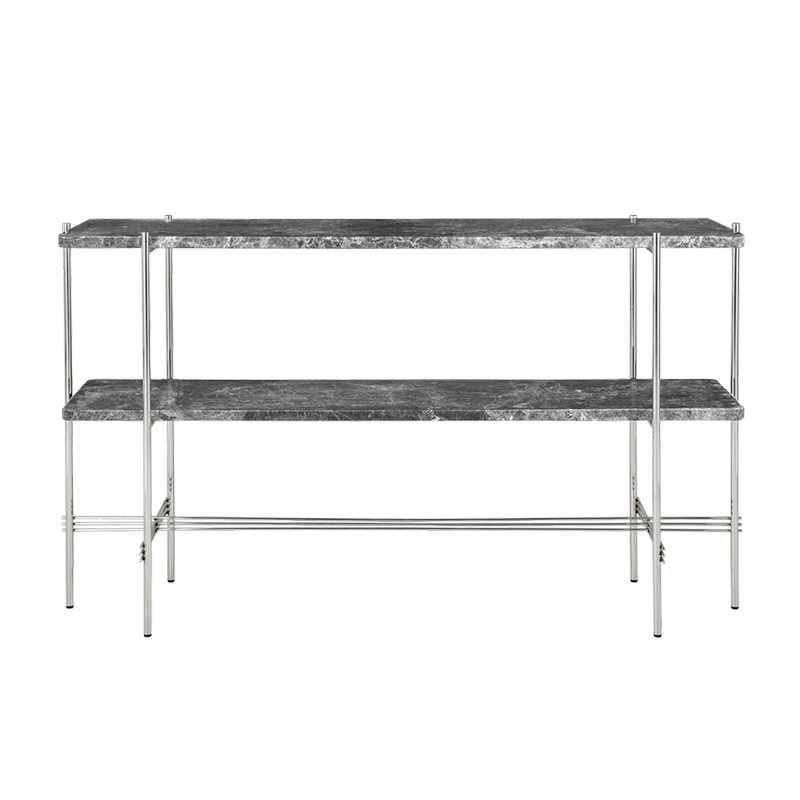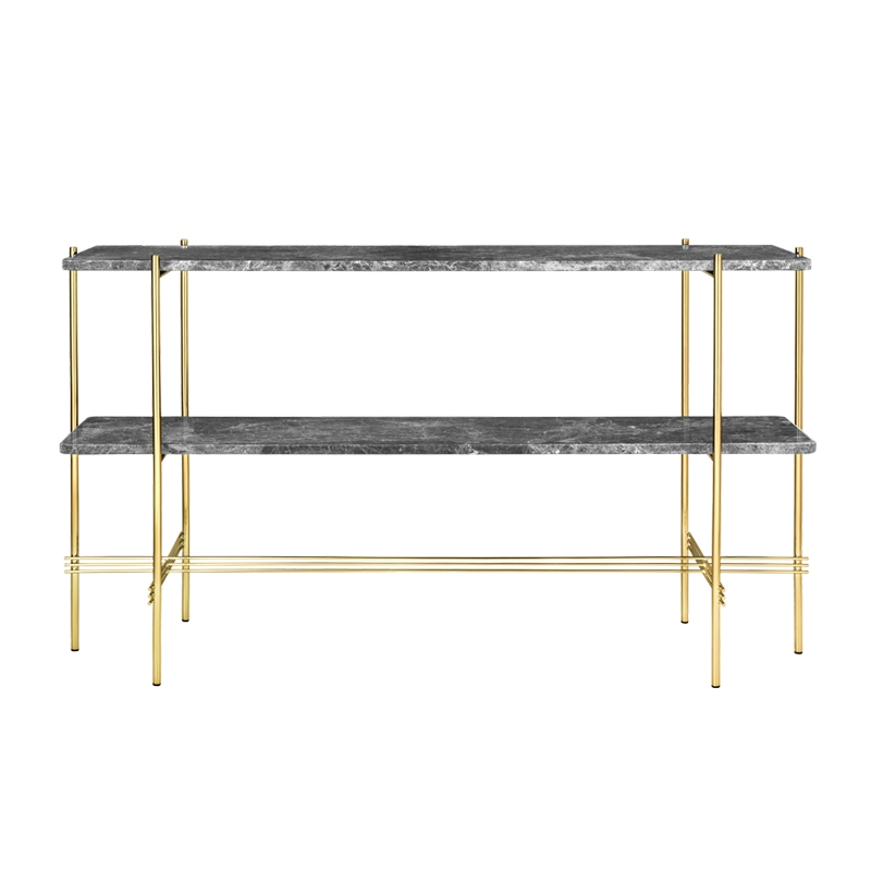 La collaboration entre le studio GamFratesi et la marque Gubi incarne la rencontre du design italien et l'inspiration danoise. L'approche minimaliste et l'artisanat traditionnel des pays scandinaves s'associent à un concept fort et émotionnel. GamFratesi joue sur les contrastes de matériaux et de formes avec un plateau en marbre ou en verre coloré reposant sur un piètement fin en métal noir ou laiton. Graphique et élégante, la console TS de