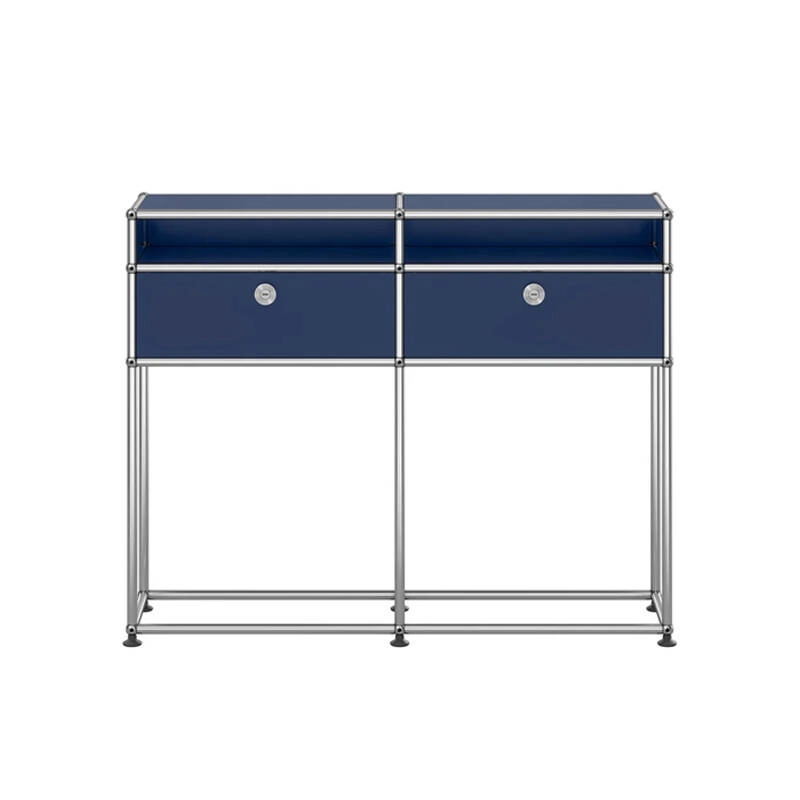 Créés par l'architecte Fritz Haller et l'industriel visionnaire Paul Schärer, les meubles USM sont fabriqués en Suisse depuis plus de 50 ans et sont reconnus dans le monde entier. La qualité de fabrication des meubles USM HALLER et leurs lignes intemporelles en font un classique incontournable du design, qui trouve sa place aussi bien dans les bureaux que dans les plus beaux intérieurs, classiques ou modernes. Sa conception modulaire permet de le faire évoluer au fil du temps selon les besoins et les envies. La console Haller M51 est composée de deux portes abattantes. La console Haller M51 est dotée d'une structure en acier chromé assemblé par des boules de connexion, habillée de panneaux d'acier thermolaqué et monté sur des patins réglables en hauteur. Elle dispose également d’un jeu d’ancrage mural. Portes classiques ne nécessitant pas de clefs. (Sécurisées à la livraison, les portes se déverrouillent pour la première fois à l’aide d’une pièce ou d’une clef normale)