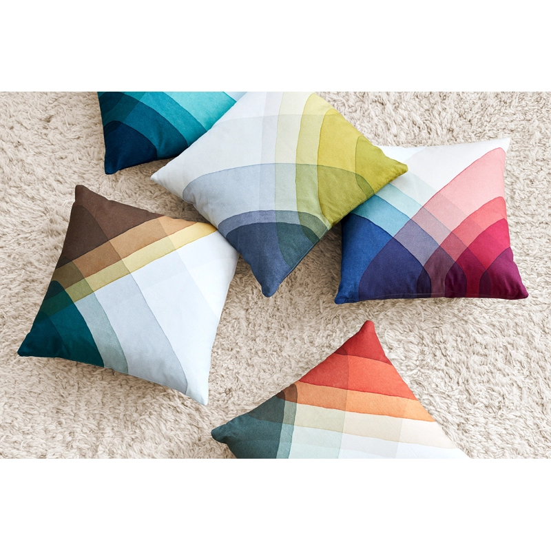 Créée par Raw-Edges pour l'ameublement et l'agencement d'un étage entier de la VitraHaus sur le Vitra Campus, la collection Herringbone est née de l‘intérêt du studio pour la technique de la teinture par immersion. Les coussins Herringbone dégagent une atmosphère de gaieté grâce à l‘utilisation de couleurs claires et de motifs captivants, qui se caractérisent par un aspect très géométrique bien qu’ils soient réalisés artisanalement. Les bandes croisées et chevauchantes d‘intensité de couleur variable ont été obtenues par de multiples immersions dans des colorants de différentes couleurs, le résultat final étant le modèle exact du motif imprimé des coussins Herringbone. Edités par Vitra, ces coussins apporte une touche vitaminée dans tous les intérieurs.