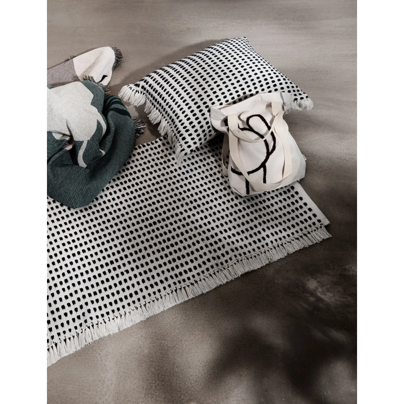En recyclant des bouteilles en plastique en fil de PET, la collection Way de Ferm Living présente une ligne incroyablement résistante et un design durable qui peut être utilisée aussi bien à l’intérieur qu’à l’extérieur. Avec son motif à carreaux intemporel, ses franges asymétriques et une surface tactile, ce grand coussin est doté d’un look classique twisté par des éléments contemporains.