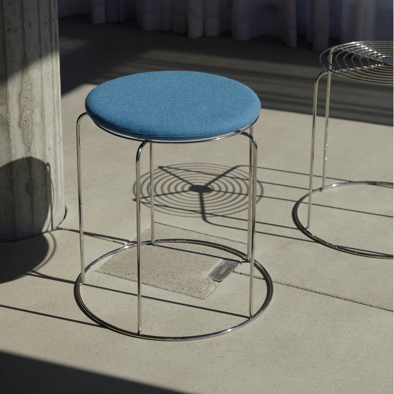 Pour ajouter une couche supplémentaire de confort au tabouret Wire Stool, And Tradition a développé un coussin de siège en collaboration avec la famille Panton. Facilement fixable grâce à des points magnétiques dissimulés, le coussin Wire Stool se décline en quatre couleurs : bleu, rouge, vert et gris.