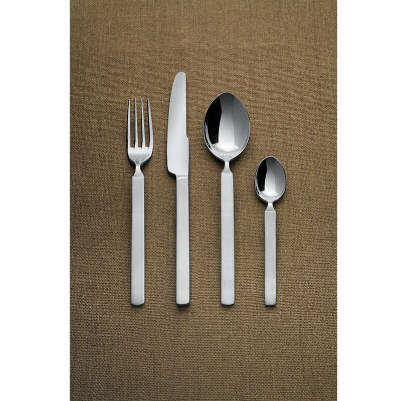 Dessiné par Achille Castiglioni pour Alessi, le service à couverts Dry a marqué le début de la production de services de la table de la marque. Ce sont aujourd'hui des classiques du design, par leur caractère novateur de la forme adoptée, associés à un grand confort d'utilisation et à une finition excellente. Dry est un service à couverts en acier brillant conçu pour 6 personnes. Il est composé de cuillers de table, fourchettes, couteaux, cuillers à café et fourchettes à gâteau. Un service design et raffiné pour tous ceux qui aiment créer de belles tables de repas dans la salle à manger.