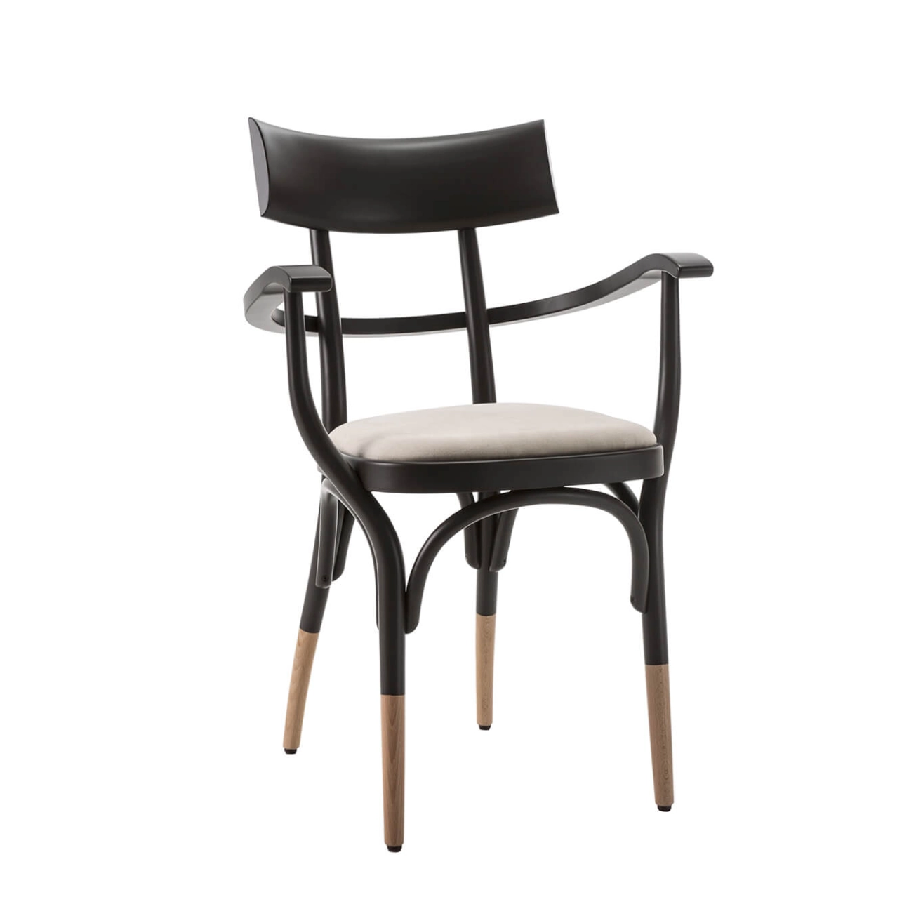 Conçue en 1994, la chaise d’Hermann Czech marque le tournant de l’ameublement moderne vers l’intimisme et le culte de la mémoire: un design actuel qui semble appartenir à d’autres époques. Une continuité idéale avec le style Thonet de la fin du XIXe siècle. Editée par Gebrüder Thonet Vienna, la chaise Czech combine l’harmonie du hêtre courbé à la vapeur à ses lignes pures et abstraites, exaltées par les différentes finitions disponibles. D’aspect solide et résistant, Czech est complétée par une assise rembourrée. Le bâti de l’assise, courbé en une seule et unique pièce, est soutenu par un châssis en arcs qui apporte stabilité et robustesse.