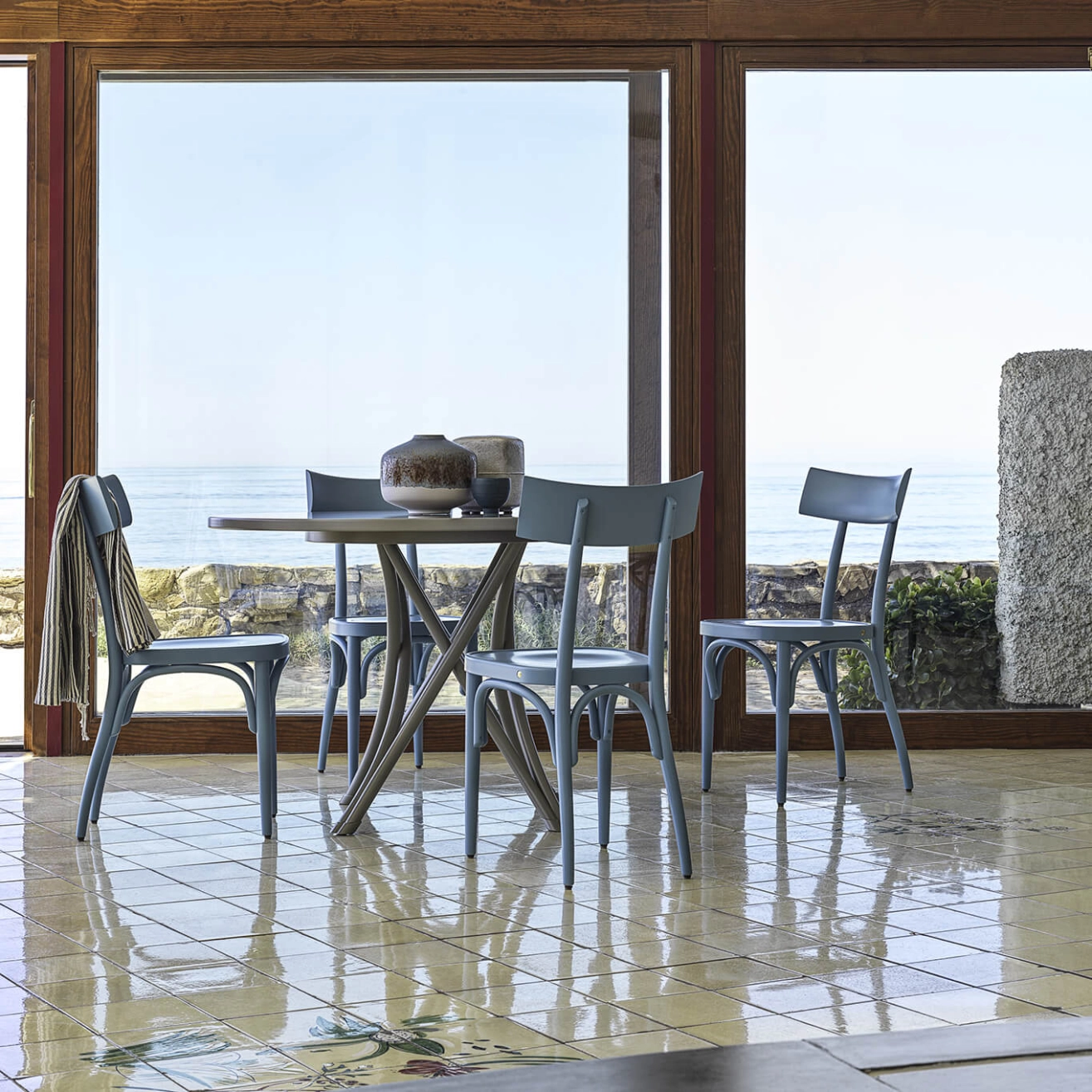 Gebrüder Thonet Vienna nait d’une famille de producteurs de meubles à succès pendant l’ère industrielle. Michael Thonet, fondateur, travaille le bois et passe de la technique du bois lamellé collé à celle du bois de section ronde courbé à la vapeur. Élégance formelle, solidité et légèreté ont déterminé le succès de Gebrüder Thonet Vienna, qui en quelques années a ouvert des sites de production dans le monde entier. Un processus de production unique qui est enraciné dans une histoire riche d’influences