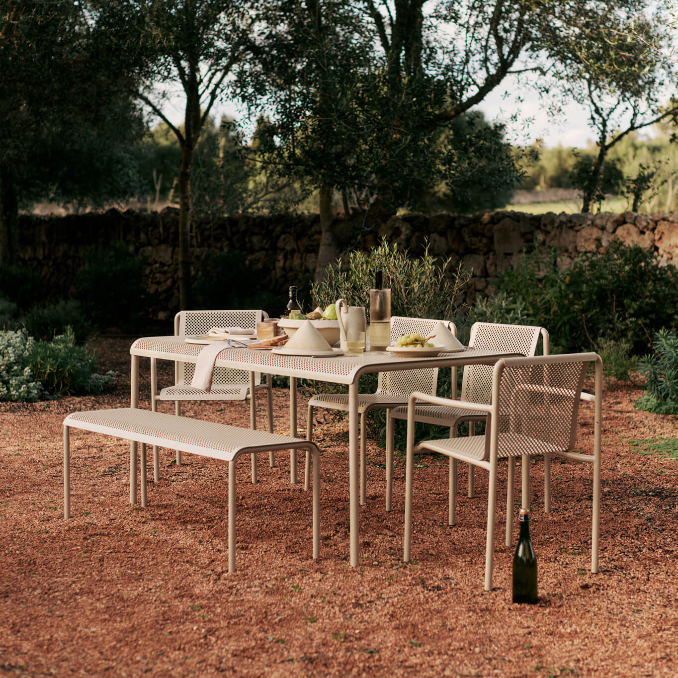 Inspirée par la beauté de la lumière du soleil filtrant à travers les feuilles, la collection Dapple apporte un sentiment de sérénité aux espaces extérieurs. Le Banc Dapple est fabriqué en acier galvanisé avec un revêtement peinture poudre, ce qui garantit la durabilité et la protection contre les éléments tout en conservant une esthétique élégante. Avec sa forme légère et aérée et son motif perforé distinctif, le Banc Dapple est à la fois pratique et élégant.