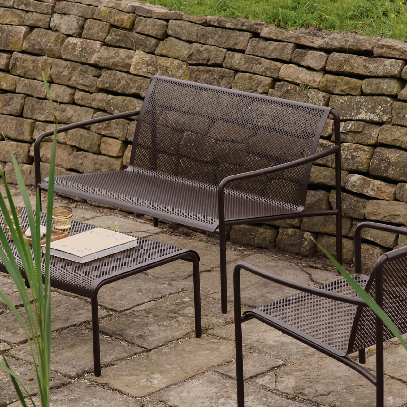 Inspiré par la beauté de la lumière du soleil filtrant à travers les feuilles, le canapé Dapple est le prolongement naturel de la collection Dapple de Ferm Living. Fabriqué en acier électro-galvanisé thermolaqué durable pour l’extérieur, le canapé Dapple est conçu pour résister aux éléments tout en conservant une esthétique raffinée et élégante. Confortable, Dapple est doté d’accoudoirs et d’un siège aux dimensions généreuses, idéal pour partager des moments sur un balcon, sur une terrasse ou dans un jardin. Sa conception empilable le rend des plus pratiques, ce qui en fait une solution peu encombrante pour une utilisation en extérieur.