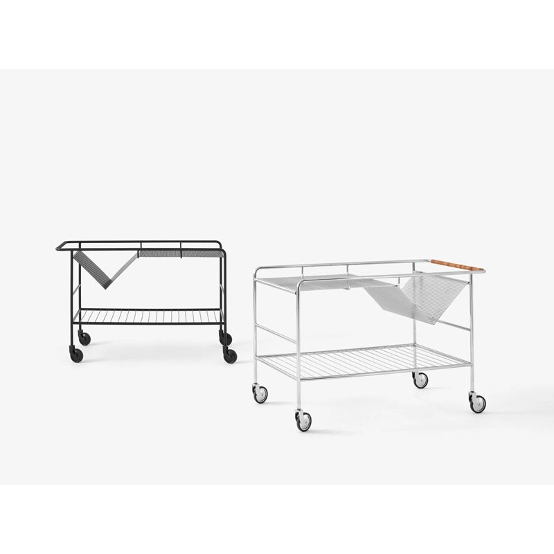 Editée par And Tradition, Alima est une desserte légère, élégante et fonctionnelle. Inspiré par le « chaos créatif » du travail à la maison, Note Design Studio a décidé de créer un rangement qui accueillerait facilement leur collection de livres, magazines, dessins et objets. Le résultat est une desserte élégante avec un emplacement en forme de V, qui permet de ranger ou d’exposer facilement les livres. Ainsi son nom reflète parfaitement sa fonction savante : Alima est un nom arabe qui signifie « érudit » ou « sage ». Idéale du salon à la cuisine, d’un espace de travail à un restaurant, Alima est dotée d’une structure métallique robuste en finition chromée ou noire matte, qui contraste avec la poignée en cuir et le plateau amovible, disponible en chêne ou noyer. Ses roulettes assurent une manœuvre facile, permettant à cette desserte d’être utilisée de différentes manières dans un intérieur, que ce soit en table d’appoint ou en rangement sous un bureau.