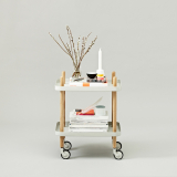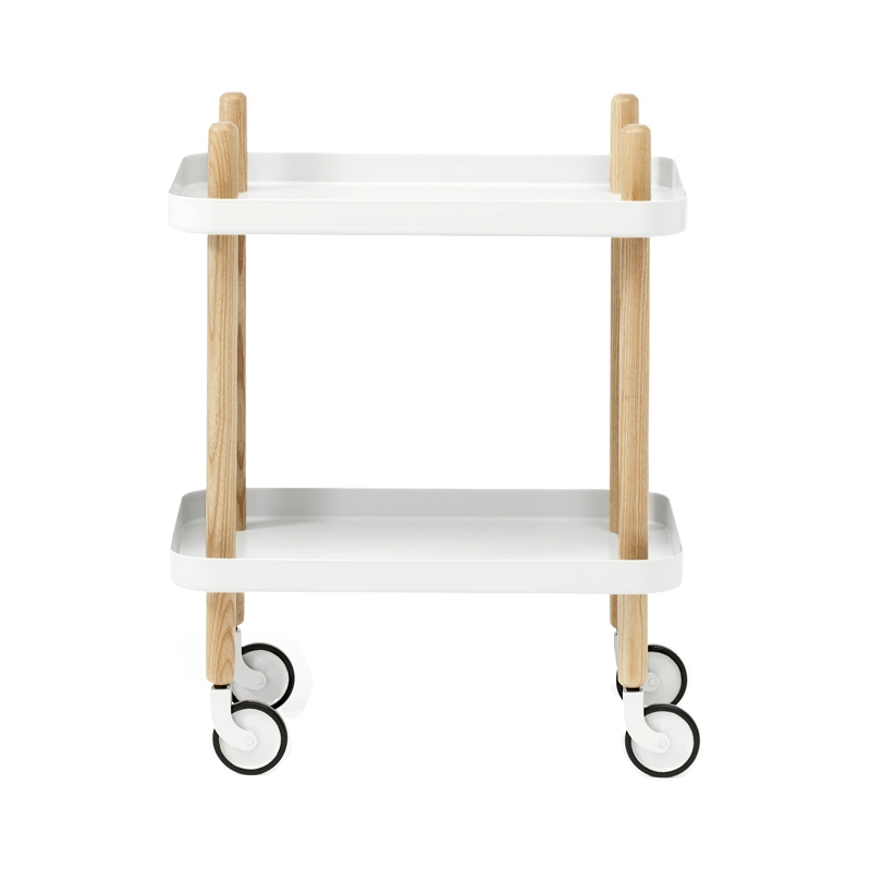 S'inspirant de la célèbre desserte sur roulettes des années 70, Block Table est une petite table d'appoint mobile au design sobre  conçue par Simon Legald pour Normann Copenhagen. Versatile, Block offre de nombreuses possibilités d'utilisation au sein de votre intérieur. Montée sur roulettes, elle est simple à déplacer à l'aide de ses quatre poignées, prolongations naturelles de ses pieds. Block n'a pas de sens particulier et ses quatre côtés peuvent être utilisés, ce qui en fait un meuble pouvant s'adapter à plusieurs fonctions : table d'appoint, table basse ou desserte dans la cuisine. Particulièrement élégante avec sa structure en bois de frêne, ses deux plateaux en acier se démontent très facilement pour un entretien sans effort. Un incontournable pour votre maison.