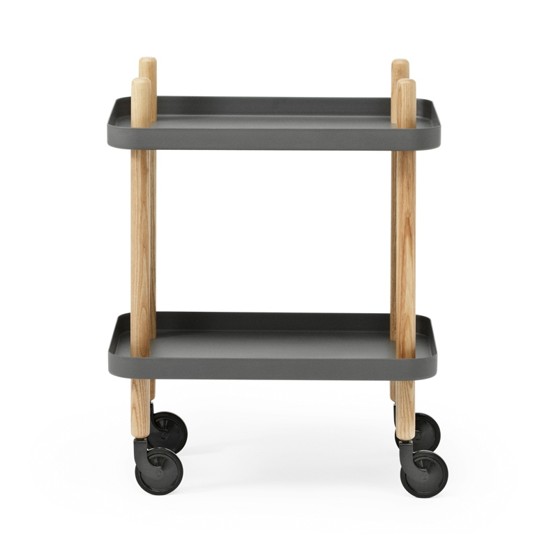 S'inspirant de la célèbre desserte sur roulettes des années 70, Block Table est une petite table d'appoint mobile au design sobre  conçue par Simon Legald pour Normann Copenhagen. Versatile, Block offre de nombreuses possibilités d'utilisation au sein de votre intérieur. Montée sur roulettes, elle est simple à déplacer à l'aide de ses quatre poignées, prolongations naturelles de ses pieds. Block n'a pas de sens particulier et ses quatre côtés peuvent être utilisés, ce qui en fait un meuble pouvant s'adapter à plusieurs fonctions : table d'appoint, table basse ou desserte dans la cuisine. Particulièrement élégante avec sa structure en bois de frêne, ses deux plateaux en acier se démontent très facilement pour un entretien sans effort. Un incontournable pour votre maison.