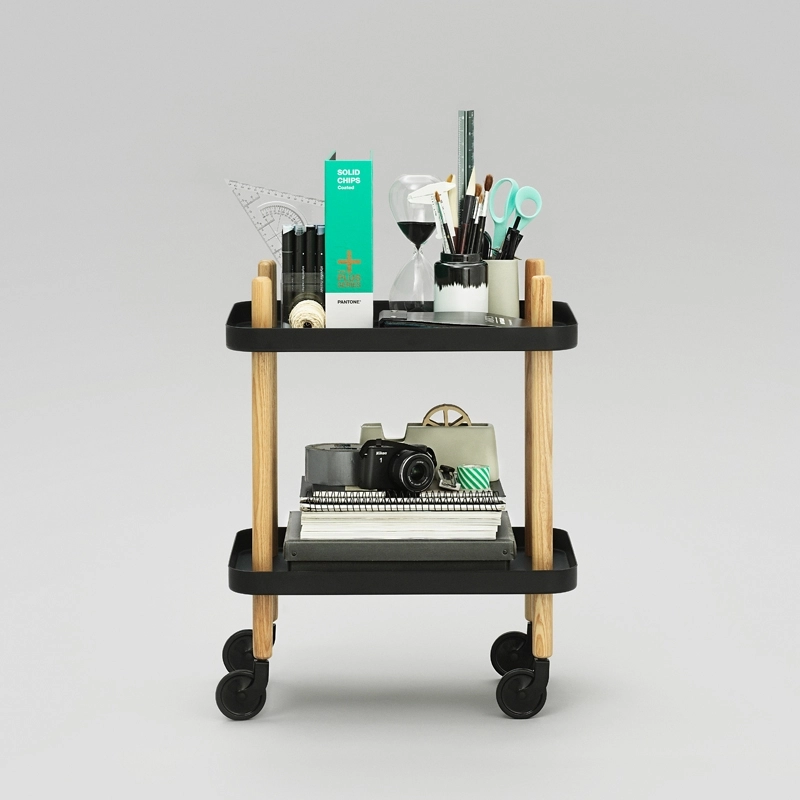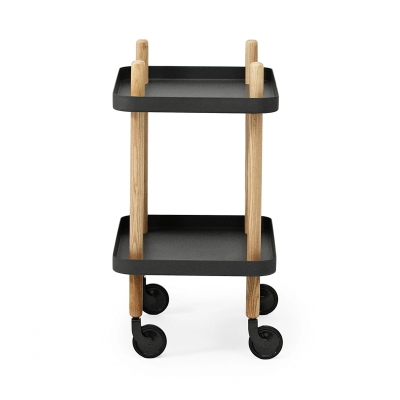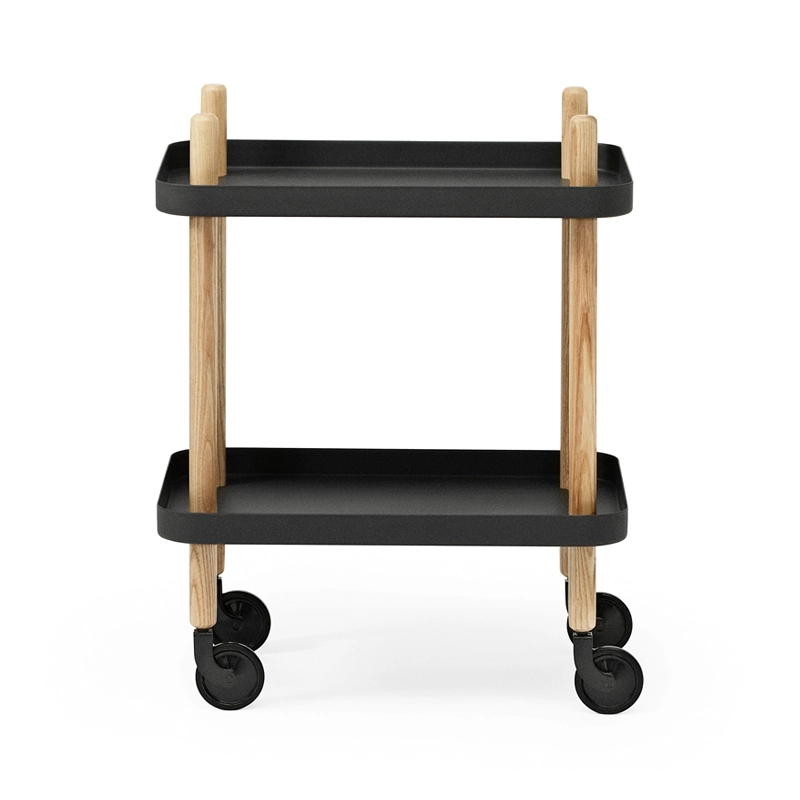 S'inspirant de la célèbre desserte sur roulettes des années 70, Block Table est une petite table d'appoint mobile au design sobre  conçue par Simon Legald pour Normann Copenhagen. Versatile, Block offre de nombreuses possibilités d'utilisation au sein de votre intérieur. Montée sur roulettes, elle est simple à déplacer à l'aide de ses quatre poignées, prolongations naturelles de ses pieds. Block n'a pas de sens particulier et ses quatre côtés peuvent être utilisés, ce qui en fait un meuble pouvant s'adapter à plusieurs fonctions : table d'appoint, table basse ou desserte dans la cuisine. Particulièrement élégante avec sa structure en bois de frêne, ses deux plateaux en acier se démontent très facilement pour un entretien sans effort. Un incontournable pour votre maison.