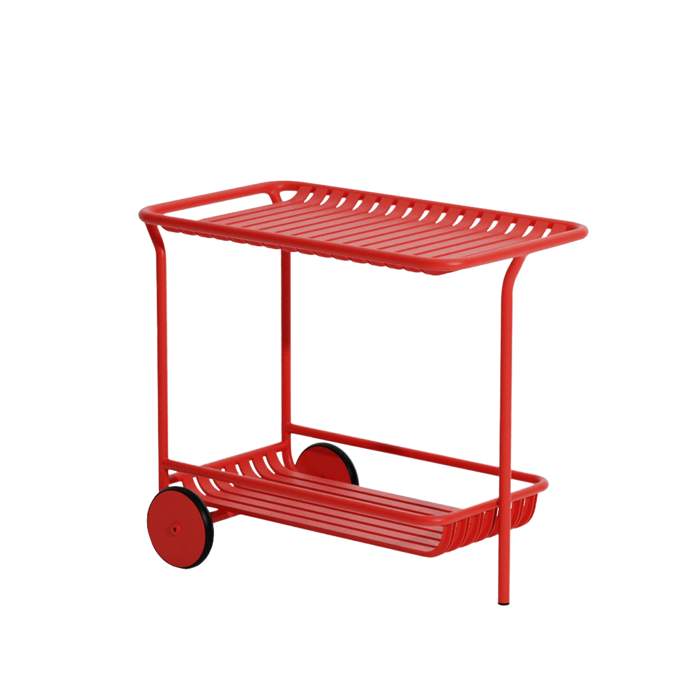 Avec Week-End, la marque française Petite Friture pose son regard singulier sur l’été et propose avec le studio Brichet-Ziegler une approche graphique et contemporaine du mobilier de jardin. La collection Week-End est une gamme de mobilier outdoor complète. Les couleurs précises sélectionnées pour cette collection marquent seules ou en combinaison les lignes d’horizon d’un balcon, d’une terrasse ou d’un jardin. Reprenant les bandes caractéristiques de la collection, cette desserte est disponible en plusieurs couleurs comme le noir, jaune, vert jade … La mise en couleurs de la collection Week-end, de Petite Friture, en peinture poudre époxy anti-UV grainée garantit un maintien impeccable des teintes au cours du temps. La desserte proposée par Petite Friture, a été conçue avec l’obsession de tirer le meilleur parti des matériaux et des techniques de réalisation à la disposition des designers. Réalisée en aluminium, matériau sélectionné pour sa légèreté et sa résistance aux intempéries, la collection Week-End allie confort esthétique et sens pratique.