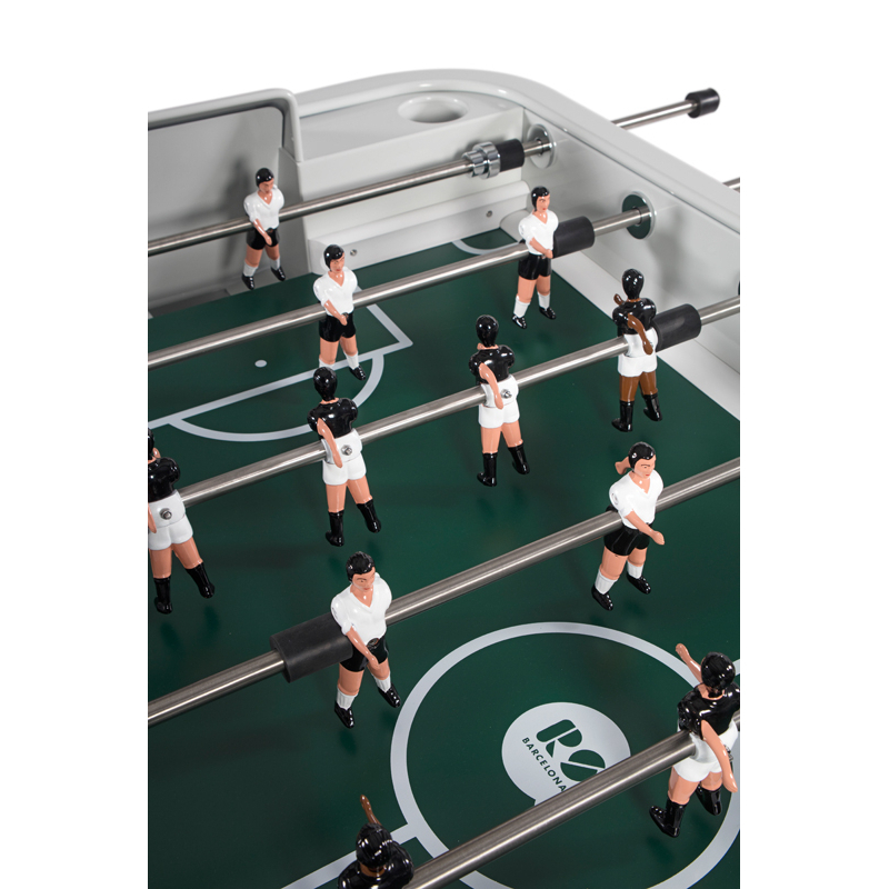Spectaculaire réinterprétation d’un jeu incontournable, le baby-foot RS2 est le modèle original de RS Barcelona avec lequel tout a commencé. L’objectif était de sortir le baby-foot du garage et de l’intégrer aux espaces de vie. Le baby-foot RS2 se démarque par son design industriel, ses lignes épurées, ses couleurs élégantes et ses détails. Sa structure est en acier avec une peinture polyester pour les modèles d’intérieur, et en acier inoxydable pour les modèles d’extérieur. Ses matériaux résistants permettent au babyfoot d’être utilisé intensément et durablement. Le baby-foot RS2 est livré avec des équipes standard. Cependant, sur demande, les équipes peuvent être personnalisées : formation de l’équipe (3-3-4 ou 2-5-3), équipes masculines, féminines, équipes mixtes, couleur de peau, couleur du terrain, couleurs des maillots, ajout de logos...