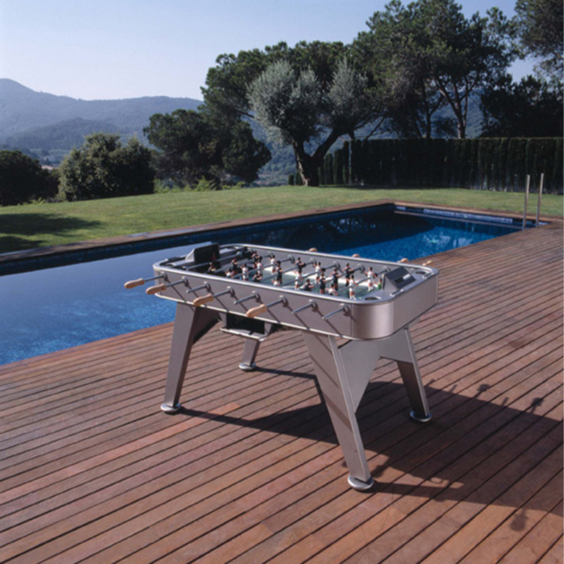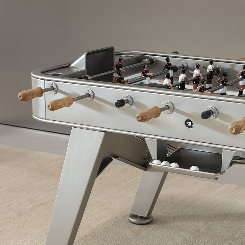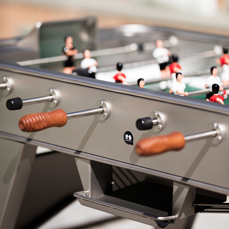 Spectaculaire réinterprétation d’un jeu incontournable, le baby-foot RS2 est le modèle original de RS Barcelona avec lequel tout a commencé. L’objectif était de sortir le baby-foot du garage et de l’intégrer aux espaces de vie. Le baby-foot RS2 se démarque par son design industriel, ses lignes épurées, ses couleurs élégantes et ses détails. Sa structure est en acier avec une peinture polyester pour les modèles d’intérieur, et en acier inoxydable pour les modèles d’extérieur. Ses matériaux résistants permettent au babyfoot d’être utilisé intensément et durablement. Le baby-foot RS2 est livré avec des équipes standard. Cependant, sur demande, les équipes peuvent être personnalisées : formation de l’équipe (3-3-4 ou 2-5-3), équipes masculines, féminines, équipes mixtes, couleur de peau, couleur du terrain, couleurs des maillots, ajout de logos...