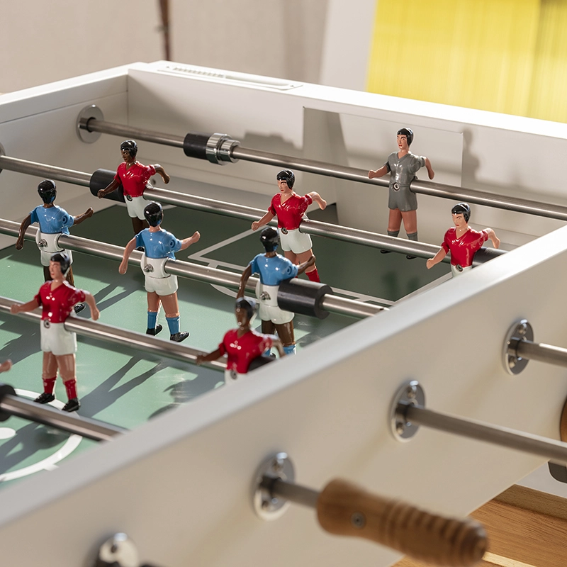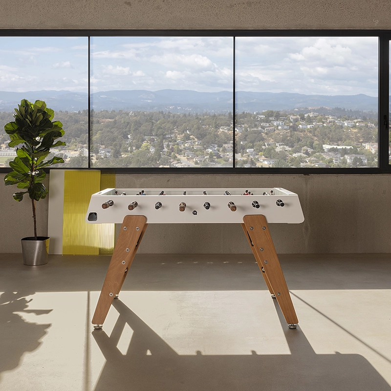 Le baby-foot RS3 Wood représente la progression de RS Barcelona dans sa détermination à repousser les limites. Pour adapter le baby-foot à la vie extérieure, la marque a choisi l’iroko, un bois extrêmement résistant. Les pieds en bois confèrent au design du baby-foot RS3 Wood une chaleur et un look contemporain. Conservant l’essence du jeu, ce baby-foot permet de profiter pleinement d’un match tout en bénéficiant d’un design durable et esthétique. Pour chaque couleur, le RS3 Wood est livré avec des équipes standard. Cependant, sur demande, les équipes peuvent être personnalisées : formation de l’équipe (3-3-4 ou 2-5-3), équipes masculines, féminines, équipes mixtes, couleur de peau, couleur du terrain, couleurs des maillots, ajout de logos...