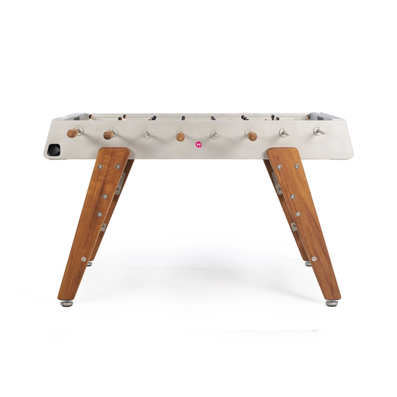 Le baby-foot RS3 Wood représente la progression de RS Barcelona dans sa détermination à repousser les limites. Pour adapter le baby-foot à la vie extérieure, la marque a choisi l’iroko, un bois extrêmement résistant. Les pieds en bois confèrent au design du baby-foot RS3 Wood une chaleur et un look contemporain. Conservant l’essence du jeu, ce baby-foot permet de profiter pleinement d’un match tout en bénéficiant d’un design durable et esthétique. Pour chaque couleur, le RS3 Wood est livré avec des équipes standard. Cependant, sur demande, les équipes peuvent être personnalisées : formation de l’équipe (3-3-4 ou 2-5-3), équipes masculines, féminines, équipes mixtes, couleur de peau, couleur du terrain, couleurs des maillots, ajout de logos...