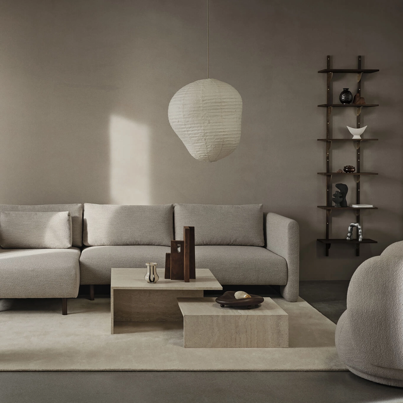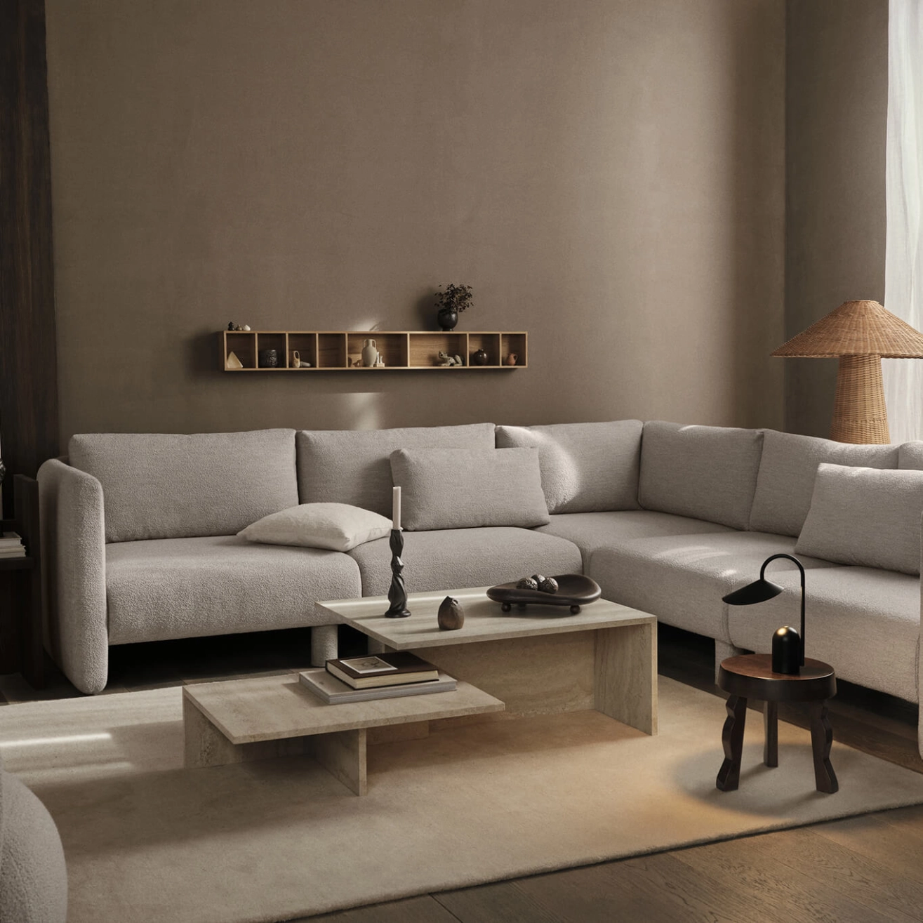 S’inspirant du minimalisme japonais, la table basse Distinct Grande Duo Ferm Living explore la création de structures complexes à partir d’un seul élément. Composée de deux tables distinctes, elle forme une pièce cohérente à différents niveaux lorsqu’elles sont utilisées ensemble, tout en permettant à chaque table d’être utilisée séparément selon les besoins. Entièrement réalisée en travertin, la Distinct Grande Duo présente une construction minimaliste qui contraste avec la richesse de la texture de la pierre, soulignant son expression architecturale et apportant une élégance contemporaine à tout intérieur.