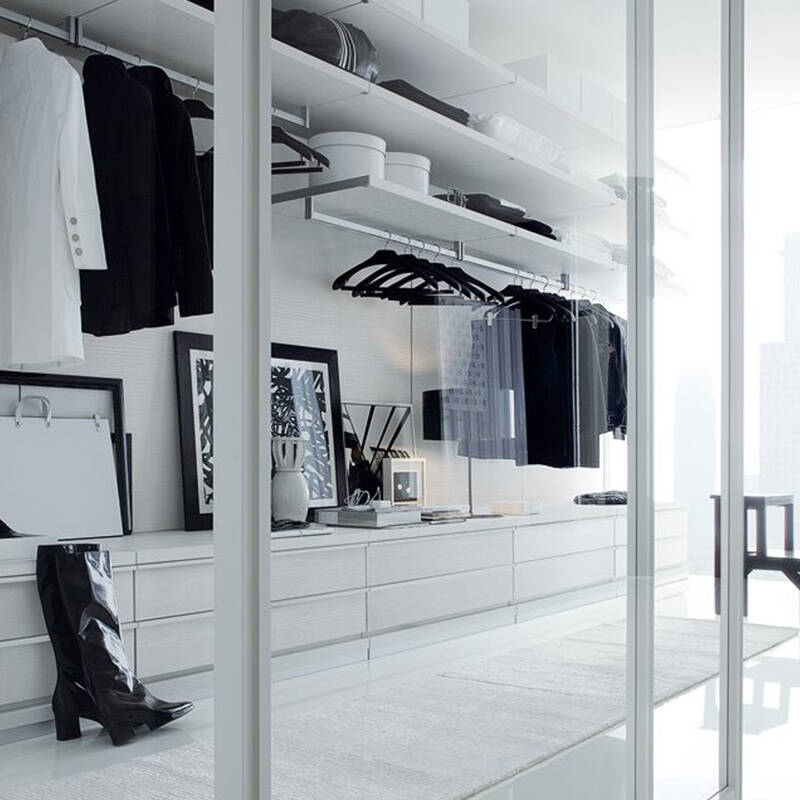 Le système Ubik de Poliform propose une organisation avancée du rangement, avec une série d'éléments et accessoires dédiés à des fonctions spécifiques : plateaux, tiroirs à façade en bois ou en verre, porte-chaussures amovibles, porte-pantalons, porte-chemises. Le système Ubik de Poliform vous permet de créer un dressing design dans lequel la fonctionnalité et le style personnel coïncident. Contactez-nous pour plus d'informations.