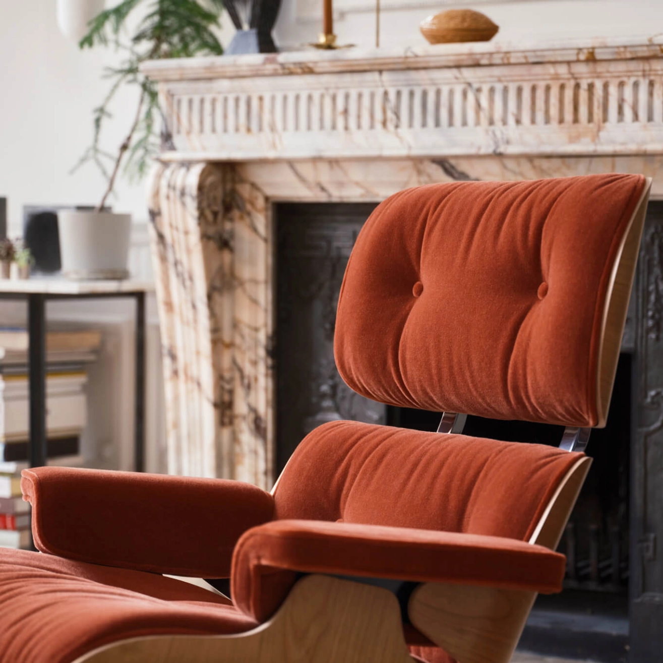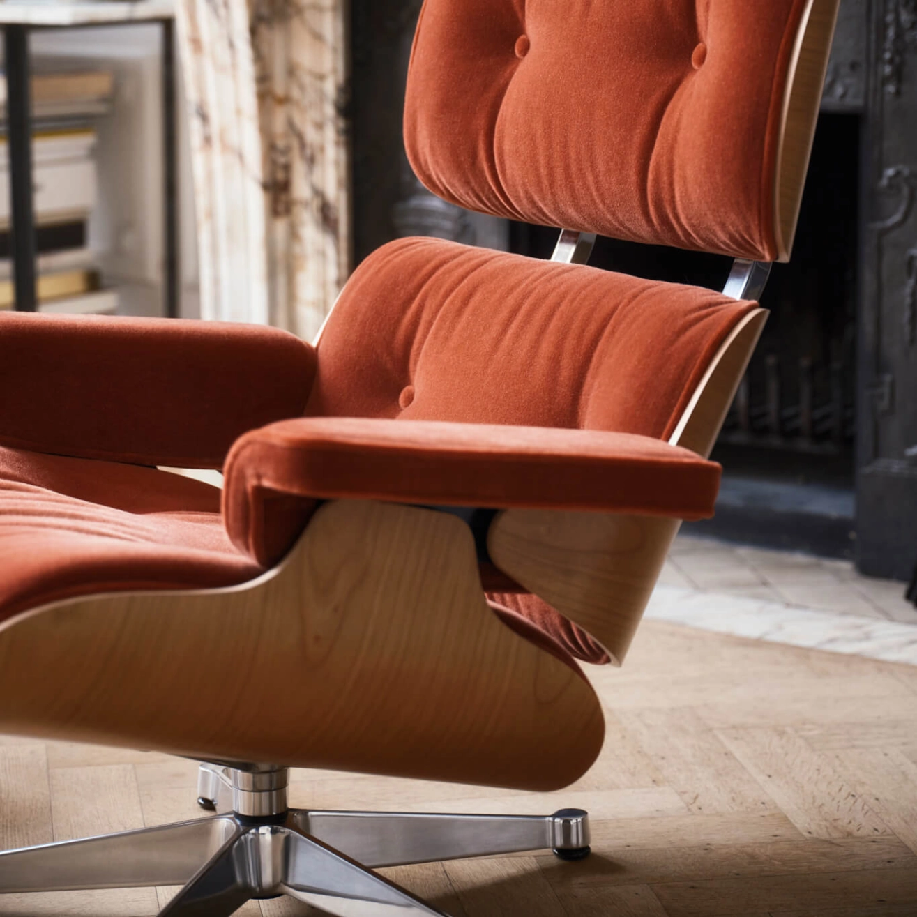 3. EAMES LOUNGE CHAIR Calma Brandy / Cerisier naturel