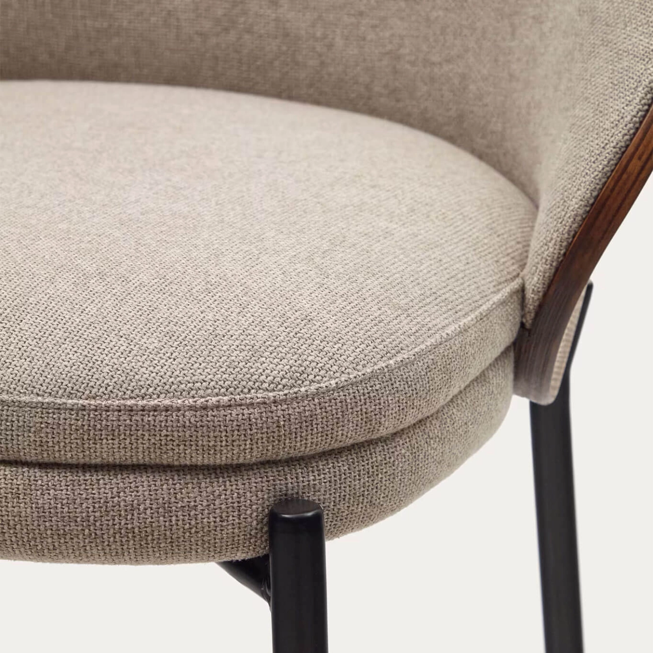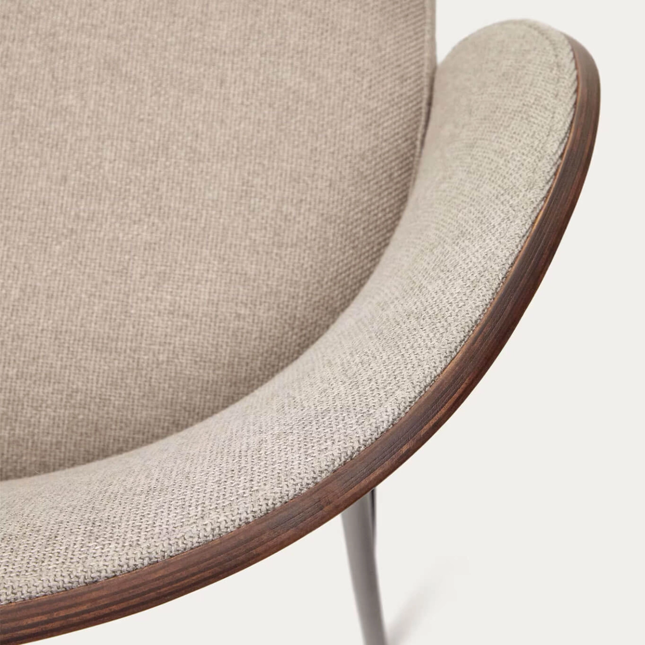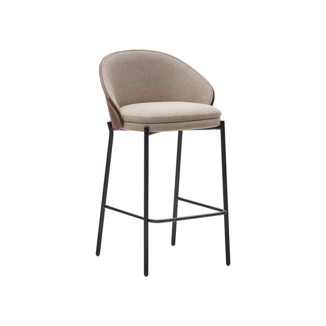 Le tabouret haut Eamy séduit par son design élégant et harmonieux, combinant trois matériaux soigneusement sélectionnés. Son dossier courbé en placage de frêne finition wengué apporte une touche chaleureuse et raffinée, tandis que sa structure en métal noir mat assure stabilité et légèreté visuelle. Revêtu d’un tissu chenille marron clair, doux et résistant, il offre un confort remarquable pour accompagner tous vos moments autour du bar ou du plan de travail. Ce modèle incarne parfaitement l’esprit de la marque.