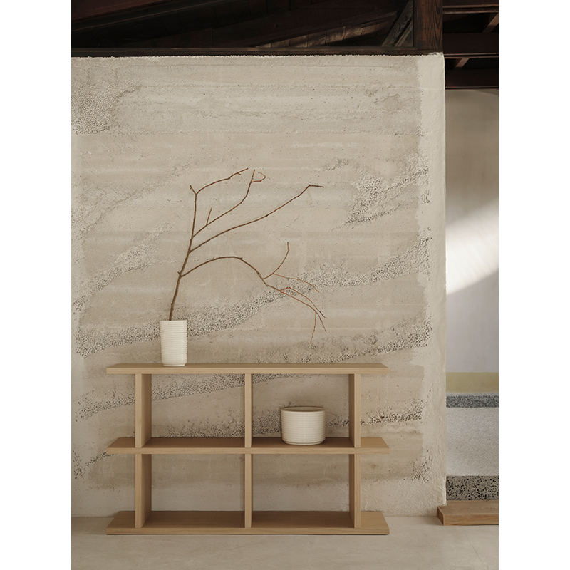 Kona avec un parfait équilibre entre fonctionnalité et style, inspirée par l'esthétique japonaise. Fabriquée en placage de chêne certifié FSC Mix avec une âme en MDF, cette