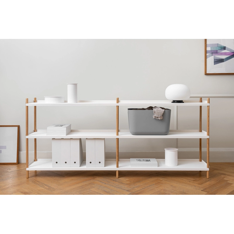 Bolt est une collection d’étagères, dotée d’une esthétique simple et fonctionnelle, dessinée par Lennart Ebert. Chaque étagère Bolt est formée à partir de deux éléments simples : des tablettes en acier plié et des montants en chêne massif. Les étagères enveloppent la structure en bois pour donner à l’ensemble solidité et stabilité. Les vis et filets intégrés à la structure permettent un assemblage simple et sans outils. Editée par Nine, l’étagère Bolt est disponible en deux longueurs, deux hauteurs et trois combinaisons de couleurs, pour s’adapter à vos besoins de rangement et à votre espace.