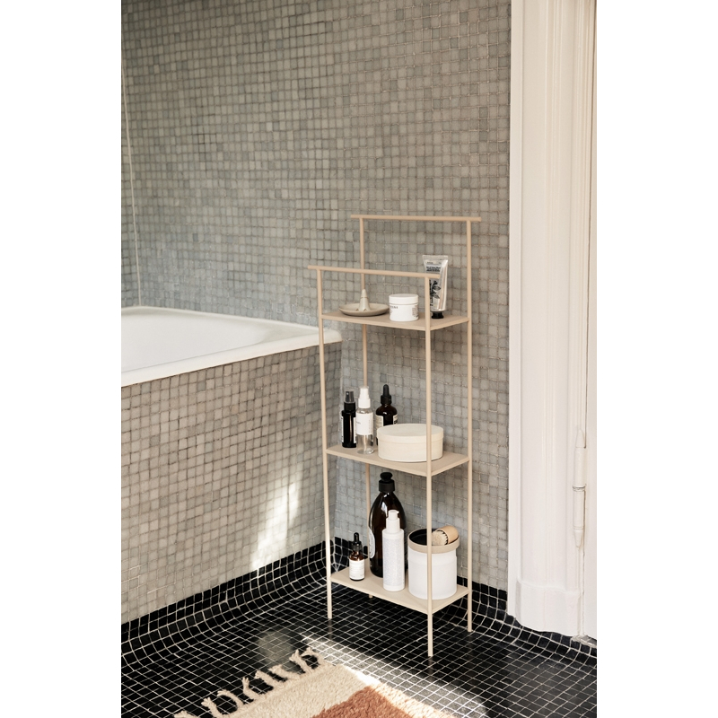 Proposée par Ferm Living, Dora est une petite étagère autonome idéale pour la salle de bain. Réalisé en métal, ce meuble à la fois simple et fonctionnel est résistant à la rouille, donc parfait pour des environnements humides. Avec ses dimensions réduites, l'étagère Dora s’intègre facilement dans les petits espaces, pouvant même être installée dans la douche. Malgré sa petite taille, elle permet de ranger tous les objets essentiels de la salle de bain.