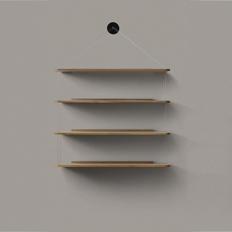 Conçue à l'origine en 1957 et perfectionnée au fil des ans, l'étagère Libreria Pensile a été produite pour la première fois par Bernini en 1966. Cherchant à réduire au minimum la structure d'une bibliothèque, Castiglioni a décidé d'accrocher les étagères sur des nœuds situés sur deux câbles fixés à un seul point sur le mur. 50 ans après son lancement, ce système d'étagère est toujours d'actualité. Editée aujourd'hui par Karakter, l'étagère Libreria Pensile incarne l'élégance et la légèreté.