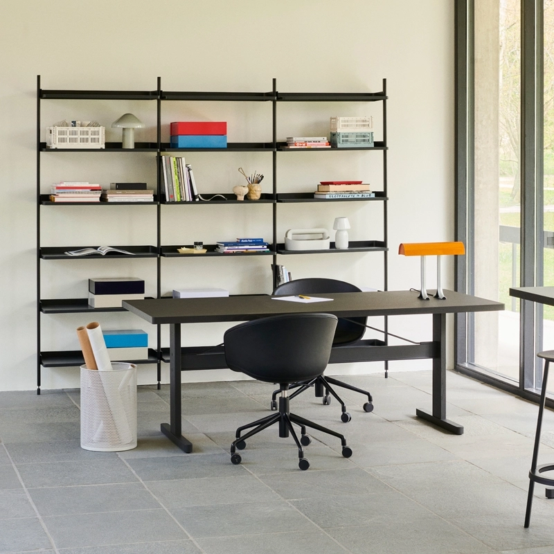 Dessiné par les célèbres designers Ronan & Erwan Bouroullec, Pier System est un système de rangement multifonctionnel, développé pour s’adapter aux conditions vie moderne. Livré à plat et facile à monter, à reconfigurer et à recycler, Pier System est doté d’une construction simple et flexible, qui permet de ranger et d’organiser de nombreux types d’objets. Réalisé à partir d’aluminium et d’acier en utilisant le minimum de composants nécessaires à un système de rangement complet, Pier System est disponible dans différentes couleurs et de nombreuses configurations, qui peuvent être combinées ensemble. Les éléments des configurations peuvent être déplacés selon les besoins ou les envies, pour intégrer les fonctions que l’on souhaite. Edité par Hay, le système de rangement Pier trouve sa place dans toutes les pièces de la maison, que ce soit le salon, la chambre, l’entrée ou le bureau. Il est également adapté aux espaces contract. La configuration 103 est dotée de trois colonnes de six étagères chacune.