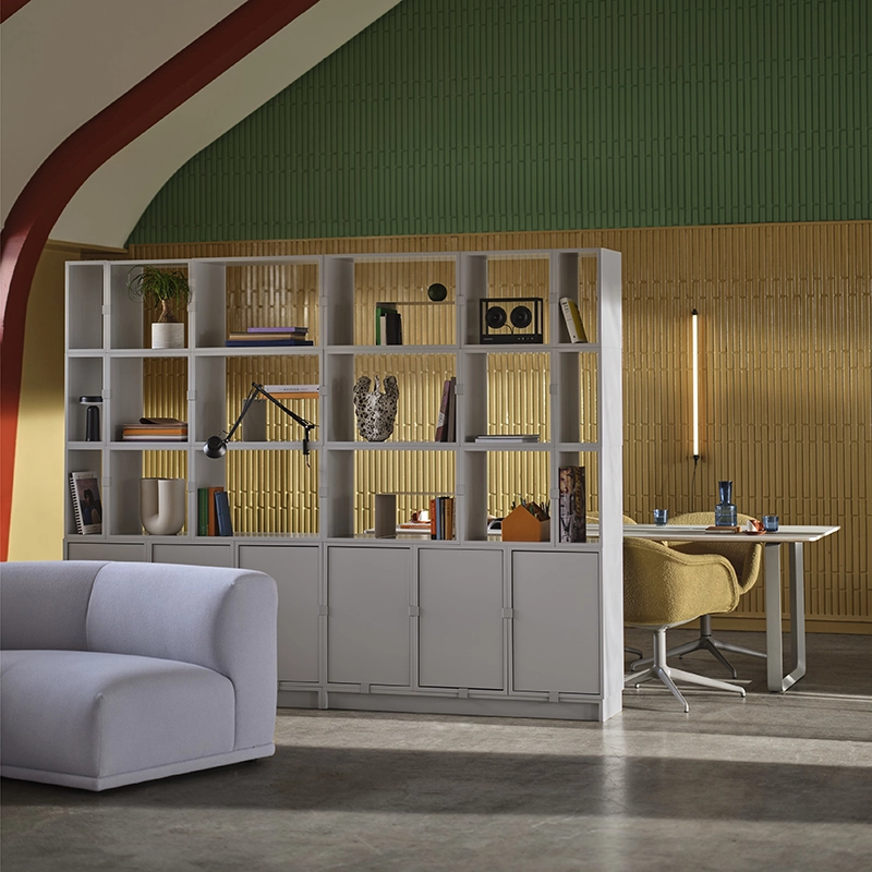 Imaginé par Julien De Smedt, Stacked de la marque Muuto incarne polyvalence et fonctionnalité. Ce système de rangement permet de créer des pièces personnalisées qui peuvent être réorganisées selon ses propres envies et besoins. La collection Stacked propose de nombreuses configurations préconçues afin d’avoir des rangements modernes chez soi, au travail ou dans d’autres environnements. Il existe des étagères sans fond, avec fond, des étagères avec porte ou sans porte mais également des podiums et des socles à associer les uns aux autres pour faire votre configuration. Les différents modules sont en chêne ou en MDF laqué PU et le podium possède en plus un cadre en acier. Ils sont disponibles dans plusieurs dimensions. Les matériaux utilisés garantissent une solidité des modules. La collection Stacked de Muuto permet ainsi de confectionner et d’organiser soi-même son meuble de rangement selon ses goûts et ses besoins.
