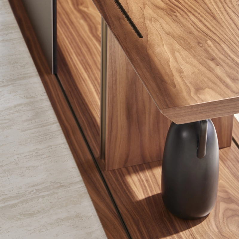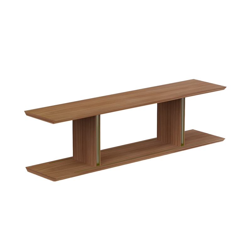 mdf plaqué noyer, aluminium anodisé bronze