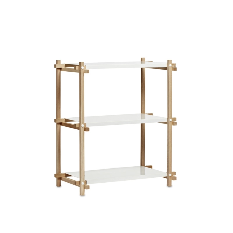 La marque danoise Hay crée au départ un rangement pour exposer ses propres produits lors d'un salon. Son potentiel en tant que système de rangement est rapidement repéré et Hay décide de produire « Woody » en plusieurs versions à destination du grand public. La structure est réalisée en bois massif et s'associe aux étagères en métal verni à l'époxy. Grâce à sa silhouette épurée et ses matériaux sobres, Woody s'intègre dans toutes les pièces de la maison, du salon à la chambre de votre enfant.