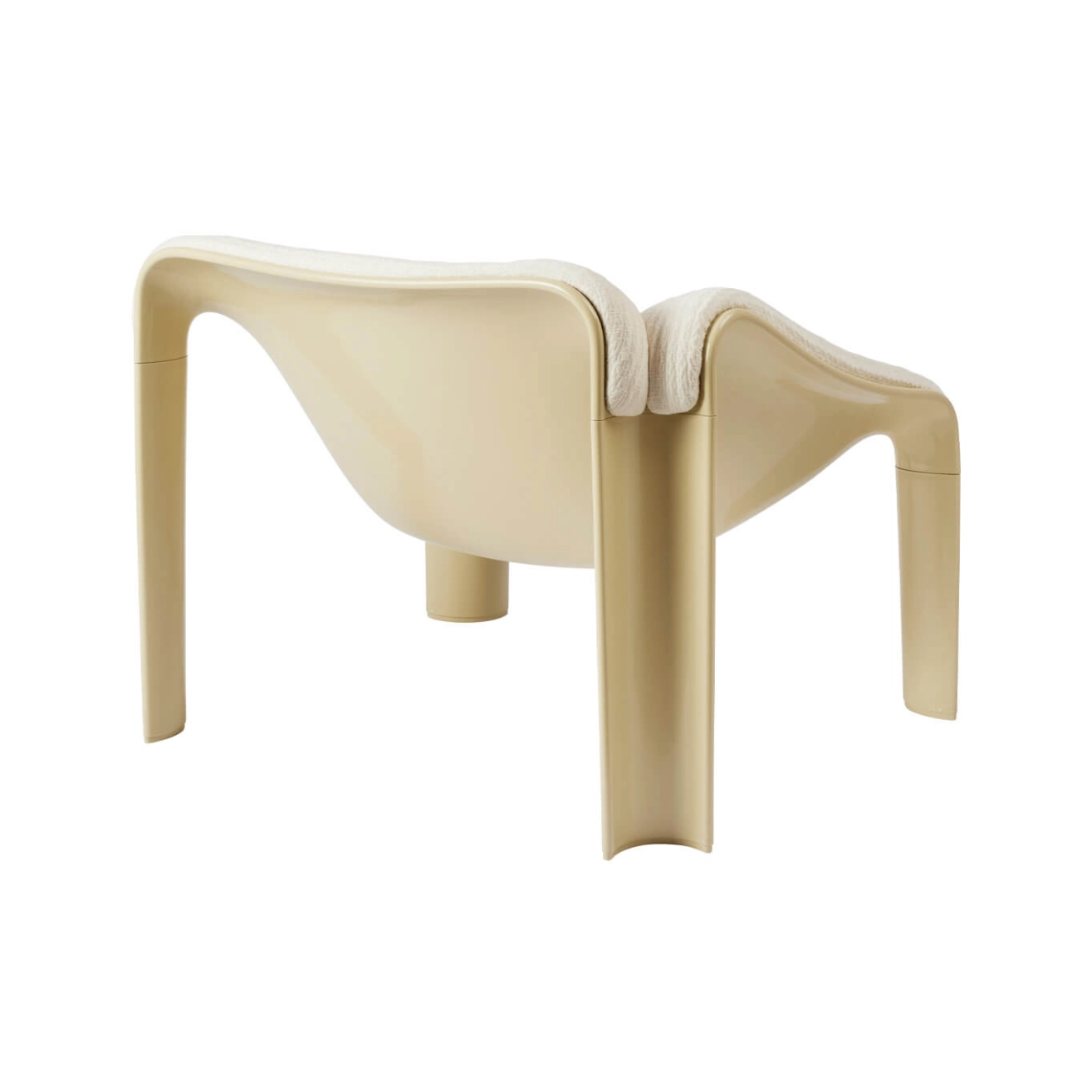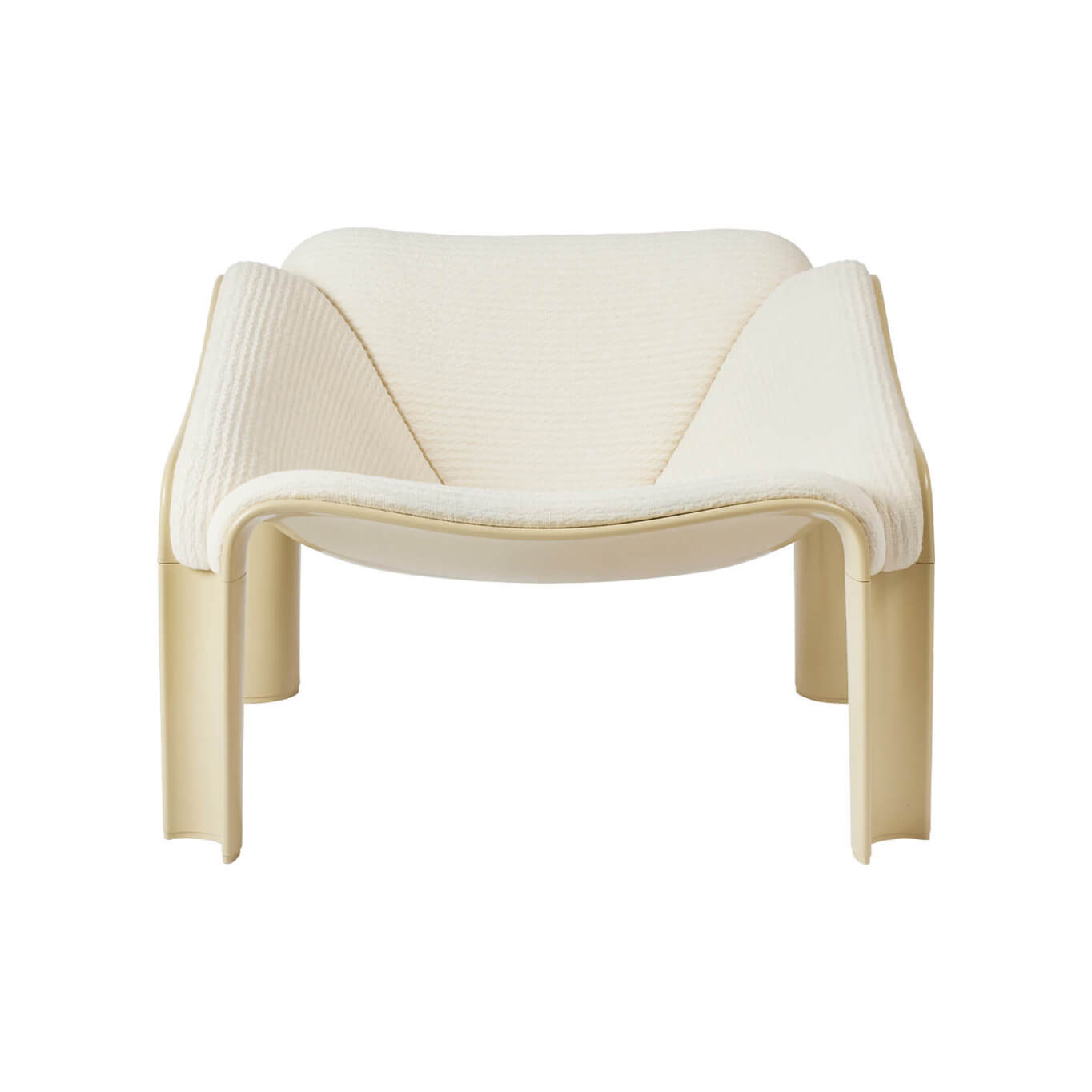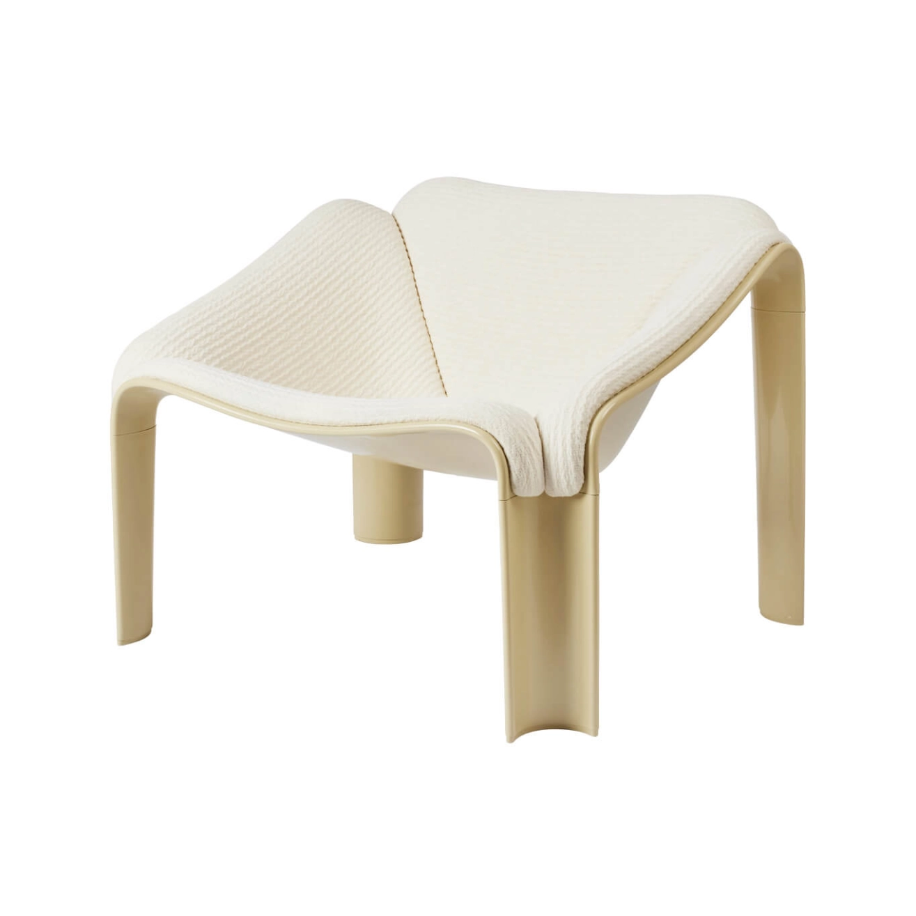 Le fauteuil F300 de Pierre Paulin, introduit à la fin des années 1960, a immédiatement attiré l'attention grâce à ses courbes fluides et à l'innovation de ses matériaux. Avec un design qui semblait tout droit venu du futur, il est rapidement devenu une référence du design moderne, salué pour son aspect audacieux et sa grande polyvalence. Il a même intégré la collection permanente du MoMA. Le F300 incarne une vision futuriste intemporelle, ce qui lui permet de traverser les décennies sans perdre de sa pertinence. Contrairement au fauteuil Pacha, autre design de Paulin, le F300 affiche une forme plus structurée, tout en conservant une fluidité sculpturale qui caractérise l'œuvre de l'artiste. Le modèle original était fabriqué en fibres de verre ou en polyuréthane injecté, alliant confort ergonomique et légèreté visuelle. Aujourd'hui, le F300 est produit en HiREK®, un polymère écologique créé à partir de déchets plastiques industriels. Ce matériau, à la fois léger et durable, est résistant aux UV, au vieillissement et à la pression, tout en offrant une surface lisse et brillante, sans avoir besoin de finitions supplémentaires. Cette évolution permet de préserver l’esthétique et les qualités des matériaux d’origine, tout en réduisant l'empreinte environnementale de sa fabrication. Le design du fauteuil F300 reste fidèle à l'approche organique de Paulin, avec ses formes curvilignes. Conçu pour offrir une variété de positions d'assise, le fauteuil bénéficie de sa légèreté pour être facilement déplacé et réarrangé selon les besoins. Ce modèle est actuellement édité par Gubi, une marque qui continue d'honorer l'héritage du designer tout en intégrant des matériaux modernes et écoresponsables dans ses productions.