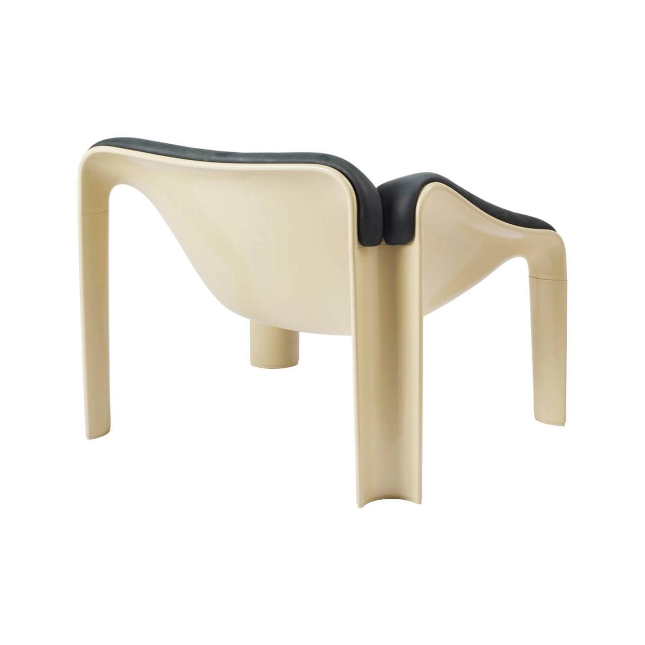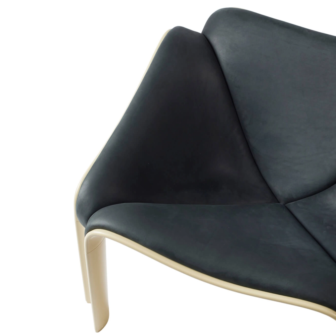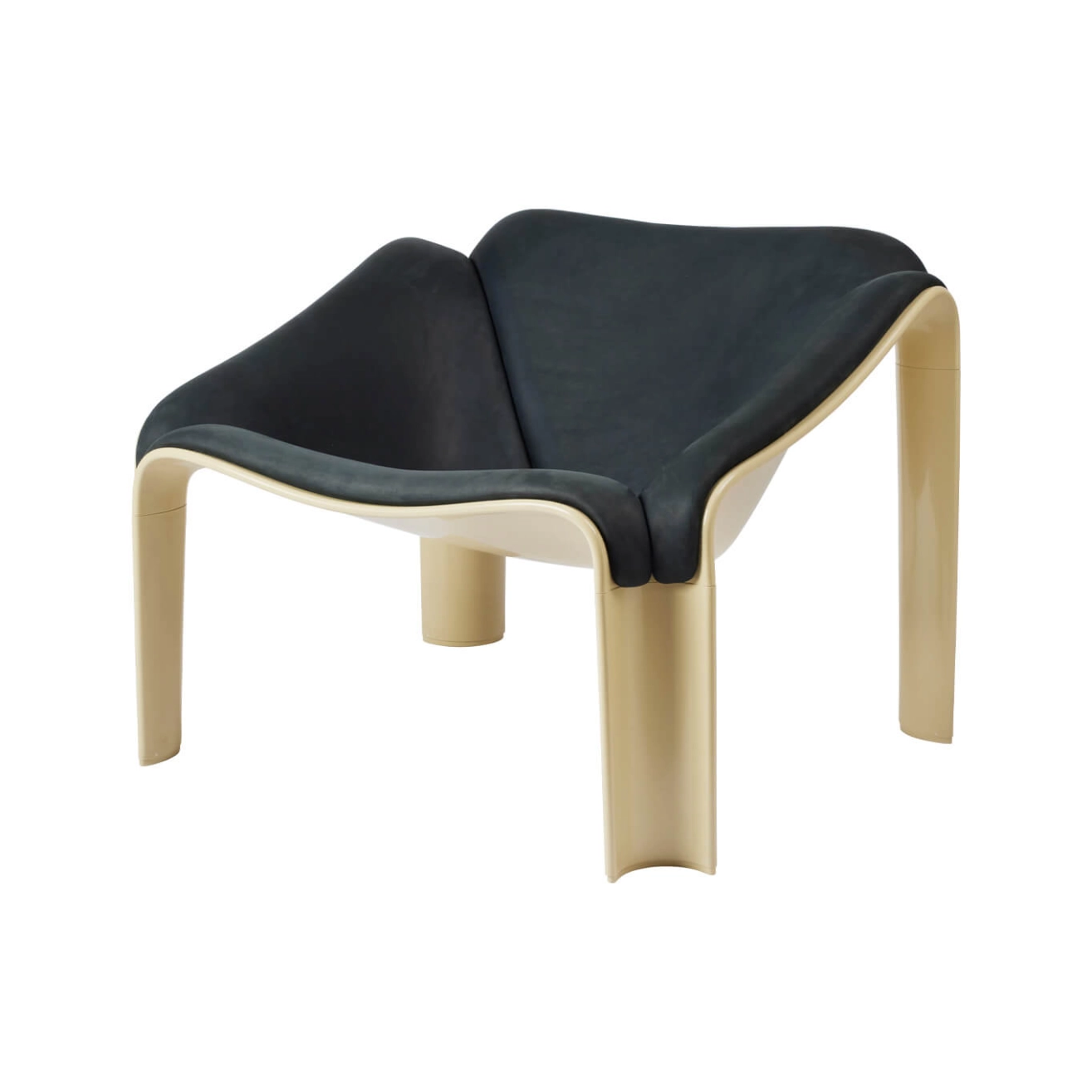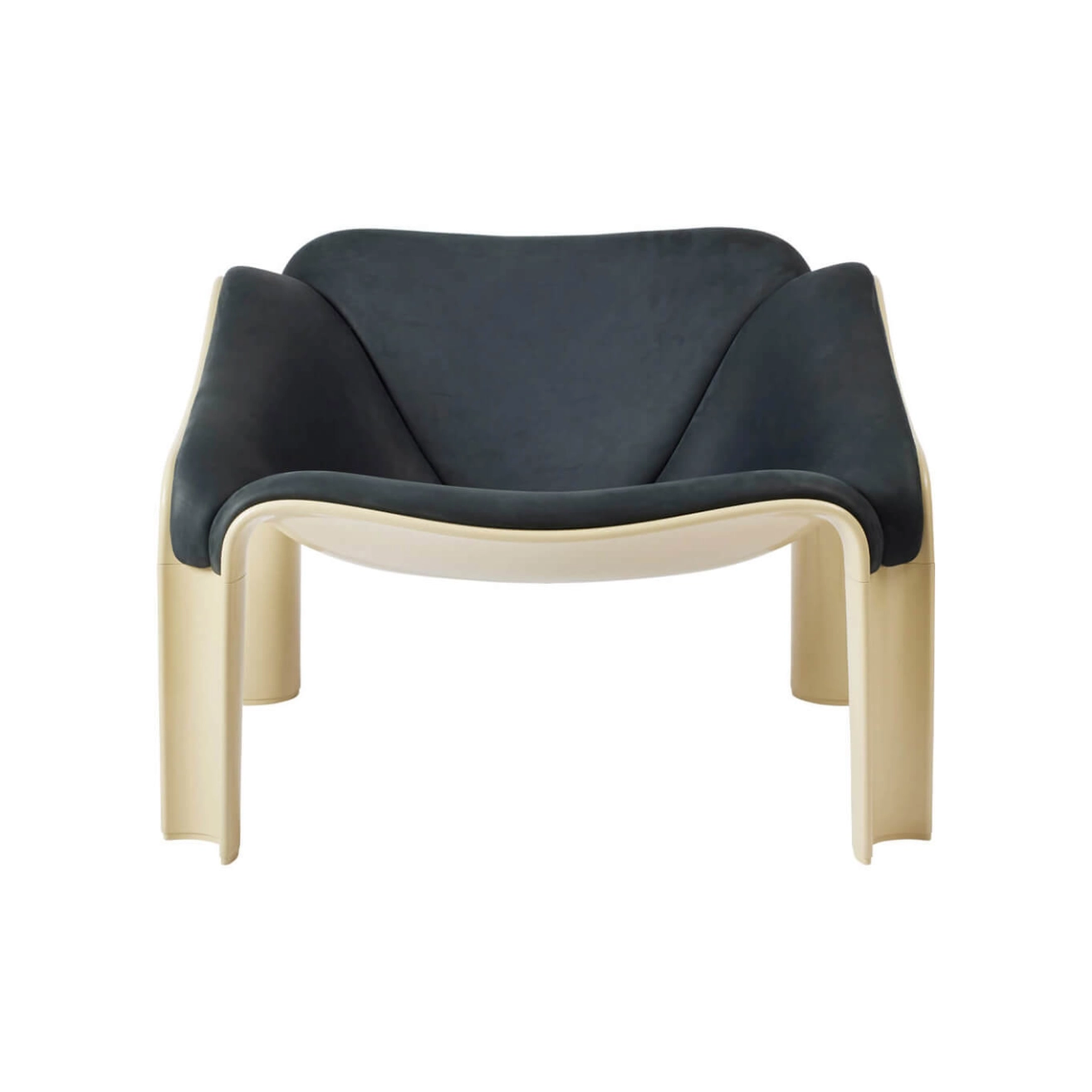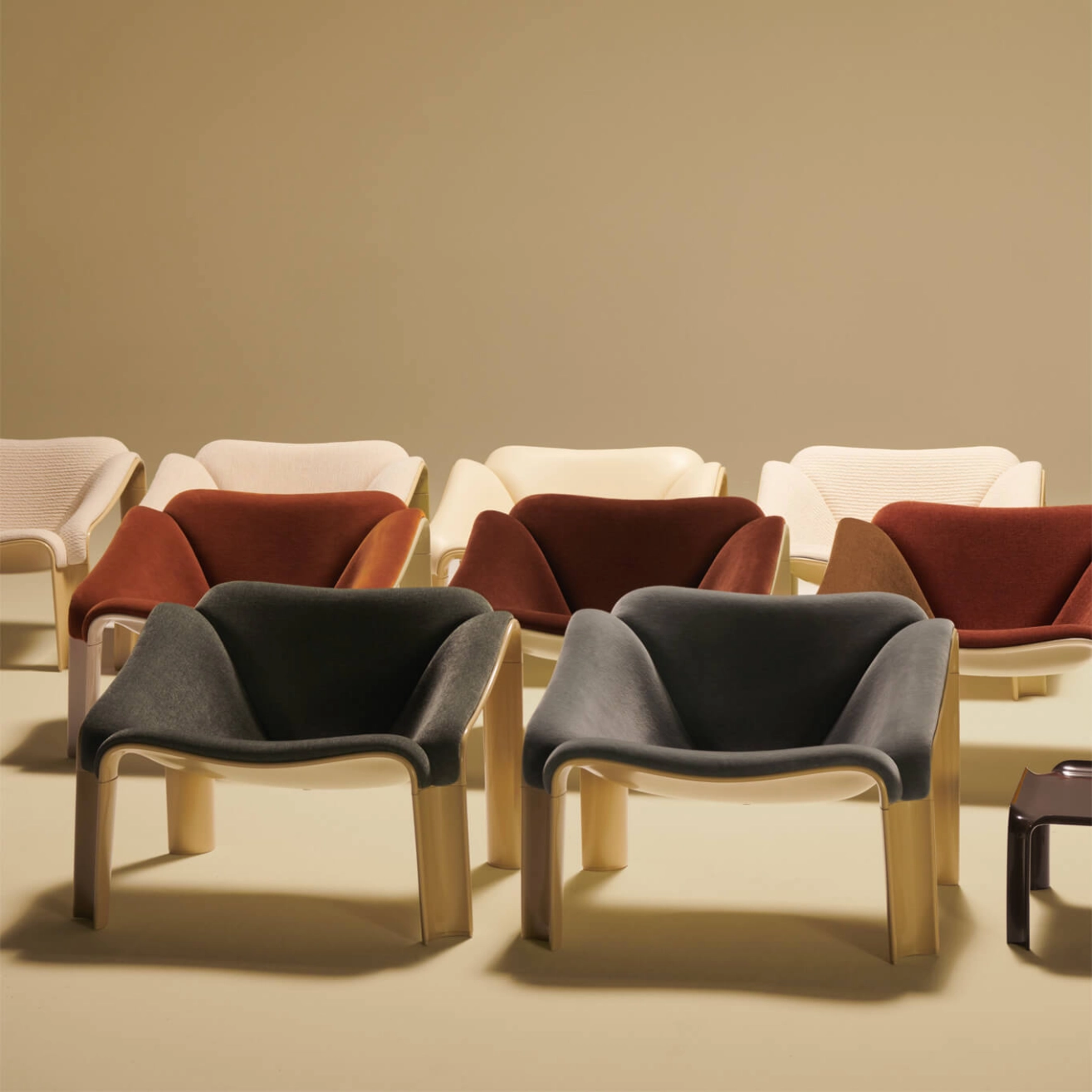 Le fauteuil F300 de Pierre Paulin, introduit à la fin des années 1960, a immédiatement attiré l'attention grâce à ses courbes fluides et à l'innovation de ses matériaux. Avec un design qui semblait tout droit venu du futur, il est rapidement devenu une référence du design moderne, salué pour son aspect audacieux et sa grande polyvalence. Il a même intégré la collection permanente du MoMA. Le F300 incarne une vision futuriste intemporelle, ce qui lui permet de traverser les décennies sans perdre de sa pertinence. Contrairement au fauteuil Pacha, autre design de Paulin, le F300 affiche une forme plus structurée, tout en conservant une fluidité sculpturale qui caractérise l'œuvre de l'artiste. Le modèle original était fabriqué en fibres de verre ou en polyuréthane injecté, alliant confort ergonomique et légèreté visuelle. Aujourd'hui, le F300 est produit en HiREK®, un polymère écologique créé à partir de déchets plastiques industriels. Ce matériau, à la fois léger et durable, est résistant aux UV, au vieillissement et à la pression, tout en offrant une surface lisse et brillante, sans avoir besoin de finitions supplémentaires. Cette évolution permet de préserver l’esthétique et les qualités des matériaux d’origine, tout en réduisant l'empreinte environnementale de sa fabrication. Le design du fauteuil F300 reste fidèle à l'approche organique de Paulin, avec ses formes curvilignes. Conçu pour offrir une variété de positions d'assise, le fauteuil bénéficie de sa légèreté pour être facilement déplacé et réarrangé selon les besoins. Ce modèle est actuellement édité par Gubi, une marque qui continue d'honorer l'héritage du designer tout en intégrant des matériaux modernes et écoresponsables dans ses productions.