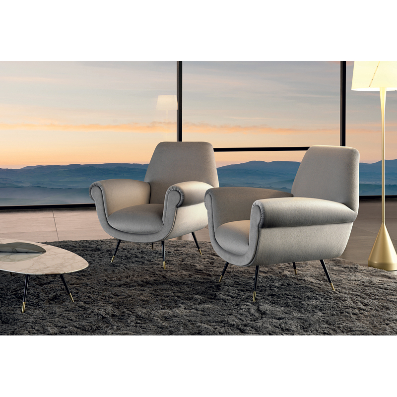 Minotti, décédé en 1991, et à Ileana, sa femme, actuellement Présidente Honoraire de la compagnie. la famille a en commun un piétement fin et rétro, mais les éléments diffèrent par leur formes générales. Les accoudoirs d’Albert empruntent la ligne classique 1900 réinterprétée par l’esthétique des années cinquante. Un élément frontal décoratif s'étend sur toute la longueur et dessine l'accoudoir. Réalisé en bois massif, il est d'abord tapissé puis fixé avec des clous à la structure principale. Un revêtement velours en laine de mohair aux reflets scintillants et aux couleurs vibrantes met particulièrement en valeur les sièges Albert. Édités à l'occasion du 70ème anniversaire de l'entreprise,