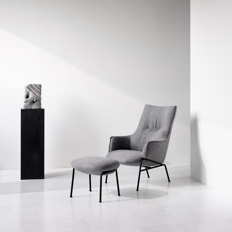 Wendelbo collabore avec le designer Luca Nichetto pour créer Aloe, un fauteuil doux et confortable qui allie formes organiques et design rigoureux. Pour créer cette pièce, Luca Nichetto s’est inspiré de la nature, avec comme point de départ la forme de l’Aloe Vera. Comme les feuilles de la plante, le fauteuil Aloe combine une forme douce et arrondie avec une tension élégante qui va vers le haut. L’assise et le dossier sont généreusement rembourrés et séduisent avec leurs détails raffinés. Ils contrastent avec la base légère en tube d’acier. Avec sa silhouette à la fois dynamique et douce, le fauteuil Aloe appelle à la détente et s’intègre facilement dans tous les styles d’intérieurs. Un repose-pied assorti est également disponible.