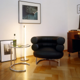 Dessiné par Eileen Gray, l'une des designers les plus marquantes de son époque, Bibendum est un fauteuil réédité par Classicon qui avait été conçu à l'origine pour l'ameublement de la villa E 1027 au style très novateur et singulier. Malgré sa grande taille, ce fauteuil associe l?effet majestueux de ses lignes au charme et à l'esprit avant-gardiste. Eileen Gray nomme ce fauteuil Bibendum pour souligner les formes rappelant le bonhomme Michelin. Il est composé d'une structure en tube d'acier chromé en forme de « U » et d'une assise confortable, rembourrée de polyuréthane, de ouate de polyester et revêtue de cuir. Eileen Gray est l'une des premières à utiliser des structures tubulaires en acier à l'image d'autres designers tels que Marcel Breuer et Charlotte Perriand. Le dossier et les accoudoirs sont formés de deux rouleaux superposés sur une assise profonde pour assurer un confort maximal. Les larges dimensions, le rembourrage généreux et le caractère novateur encore aujourd'hui, font de ce fauteuil une des icônes du XXeme siècle.
