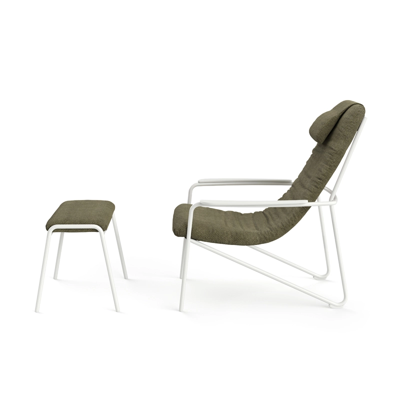 Conçu pour profiter pleinement des moments à l’extérieur, Calma est un fauteuil d’extérieur léger et décontracté. Mélange ingénieux entre un hamac et un fauteuil rembourré, Calma se caractérise par son confort. L’assise consiste en une longue bande suspendue qui s’adapte à chacun de façon naturelle pour être dans une position vraiment détendue. La longueur de l’assise permet de reposer la tête sur un appuie-tête qui peut être rabattu vers l’arrière, en fonction de la position que vous souhaitez adopter.