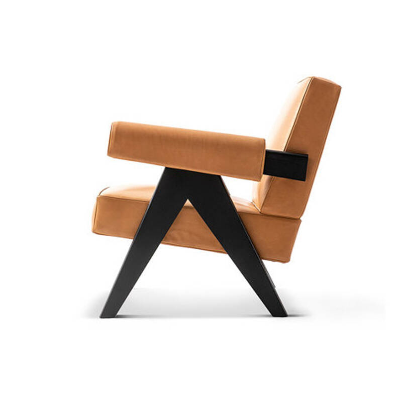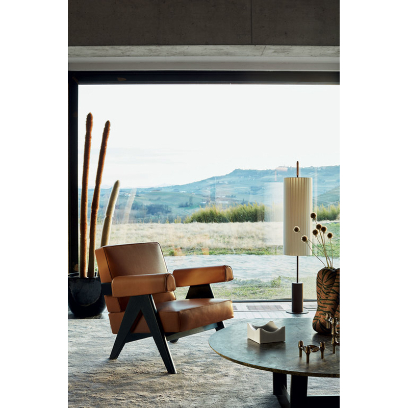 fauteuil Capitol Complex offre un confort immédiat grâce à ses généreux rembourrages enveloppant l'assise, les accoudoirs et le dossier. Il fait partie d'une collection de meubles liés à l'histoire de Chandigarh, une ville indienne conçue par Le Corbusier dans les années 1950. Pierre Jeanneret, qui a joué un rôle clé dans la création de la ville, est considéré comme l'auteur de nombreux meubles de cette collection. La structure du