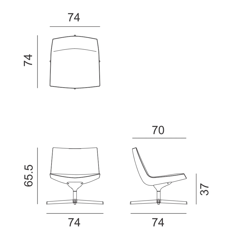 l 74cm x p 74cm x h 65,5cm, assise h 37cm