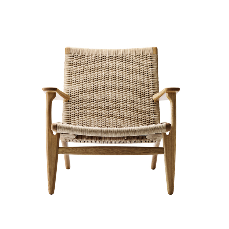 Le fauteuil CH25 est l’un des premiers sièges créés en exclusivité par Hans J. Wegner pour Carl Hansen. Comme beaucoup d'autres designs emblématiques de Hans J. Wegner, le fauteuil CH25 est épuré et simple, tout en étant doté d’une forme distinctive. Mais sa présentation a fait sensation en raison du choix de matériaux pour le dossier et l'assise. La corde en papier tissé, conçue pour remplacer le jonc de mer pendant la Seconde Guerre mondiale, n'avait pas été utilisée pour des meubles auparavant. Cependant, Wegner était enthousiasmé par l'apparence du matériau, ses propriétés non extensibles et sa durabilité optimale. Le fauteuil CH25 est resté extrêmement populaire, toujours produit par Carl Hansen depuis 1950 : un témoignage de l'approche visionnaire de Wegner. Il faut 10 heures à un artisan qualifié et environ 400 mètres de corde de papier pour réaliser une assise et un dossier à la main, en utilisant une technique particulière ressemblant au tissage, qui est visible des deux côtés du dossier.