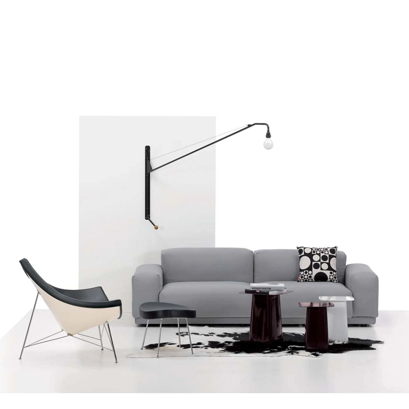 Né en 1908 dans le Connecticut, George Nelson effectue ses études d’architecture à l’Université de Yale puis il obtient une bourse qui lui permet d’étudier à l’Académie Américaine à Rome. De 1935 à 1944, il fait partie de la rédaction de « l’Architectural Forum ». Il est alors repéré par le chef de l’entreprise de mobilier Herman Miller où il sera par la suite nommé directeur du Design jusqu’en 1972. George Nelson crée sa propre agence à partir de 1947 et imagine de nombreux produits qui sont considérés comme des icônes du modernisme. Parallèlement, il collabore avec Vitra à partir de 1957. Parmi ses créations emblématiques qui regroupent grand nombre de meubles, luminaires, horloges, nous retrouvons la Coconut Chair, le Marshmallow Sofa ou encore les suspensions Bubble. Une attention particulière est apportée au choix des matériaux et à la légèreté. A sa mort en 1986 à New York, les archives de George Nelson, considéré comme le fondateur du modernisme américain, sont remises au Vitra Design Museum.