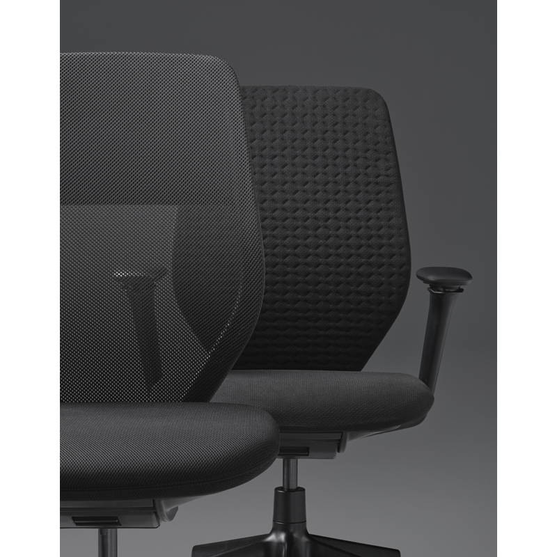 Le fauteuil de bureau ACX Light se distingue d'ACX Mesh et Soft par son dossier qui comporte un revêtement en résille standard. Doté d'une assise en tissu technique d'espacement Silk Mesh, le siège Vitra est conçu pour offrir un confort agréable et faciliter la circulation de l'air.