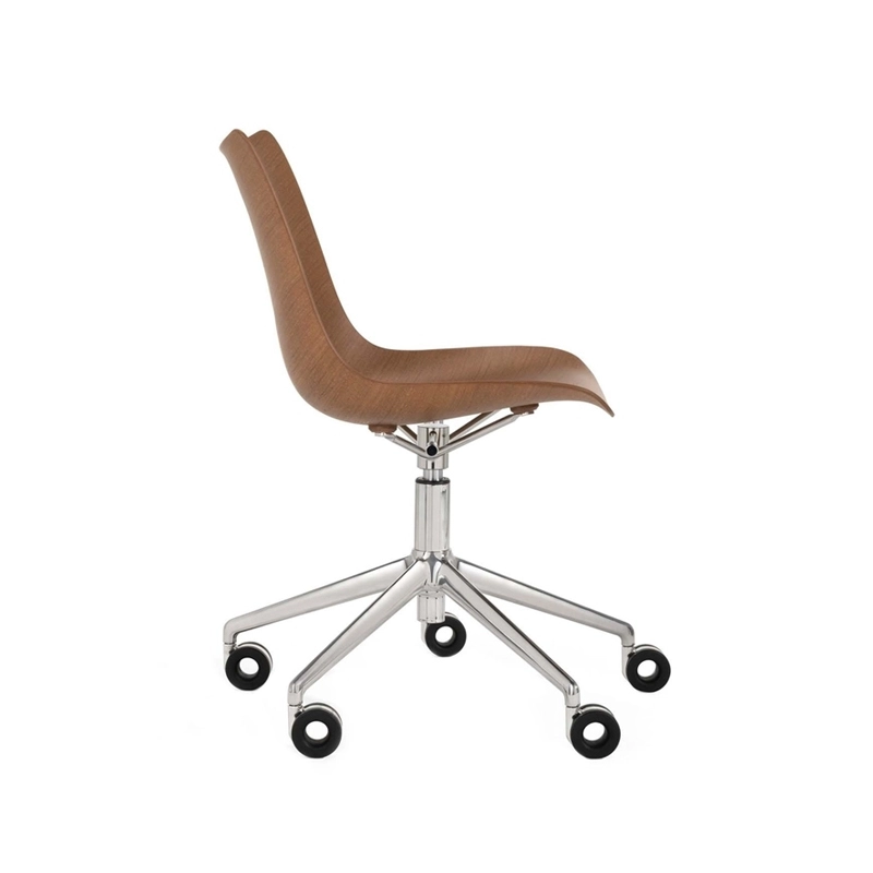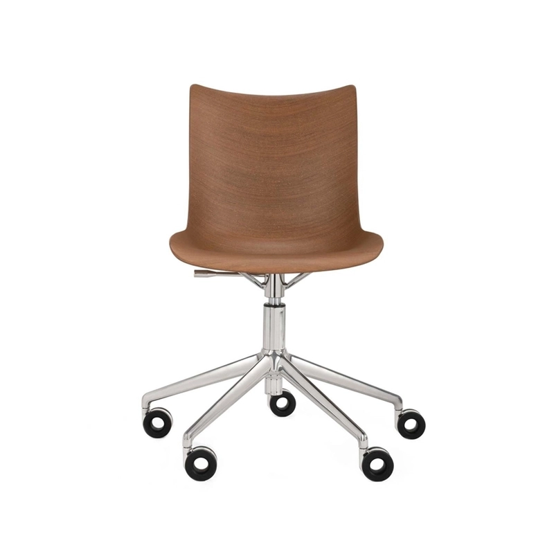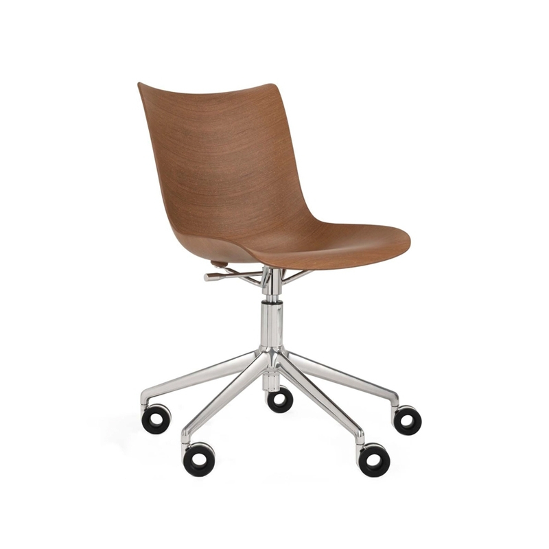 Fauteuil de bureau P/WOOD roulettes Bois foncé/ chrome KARTELL